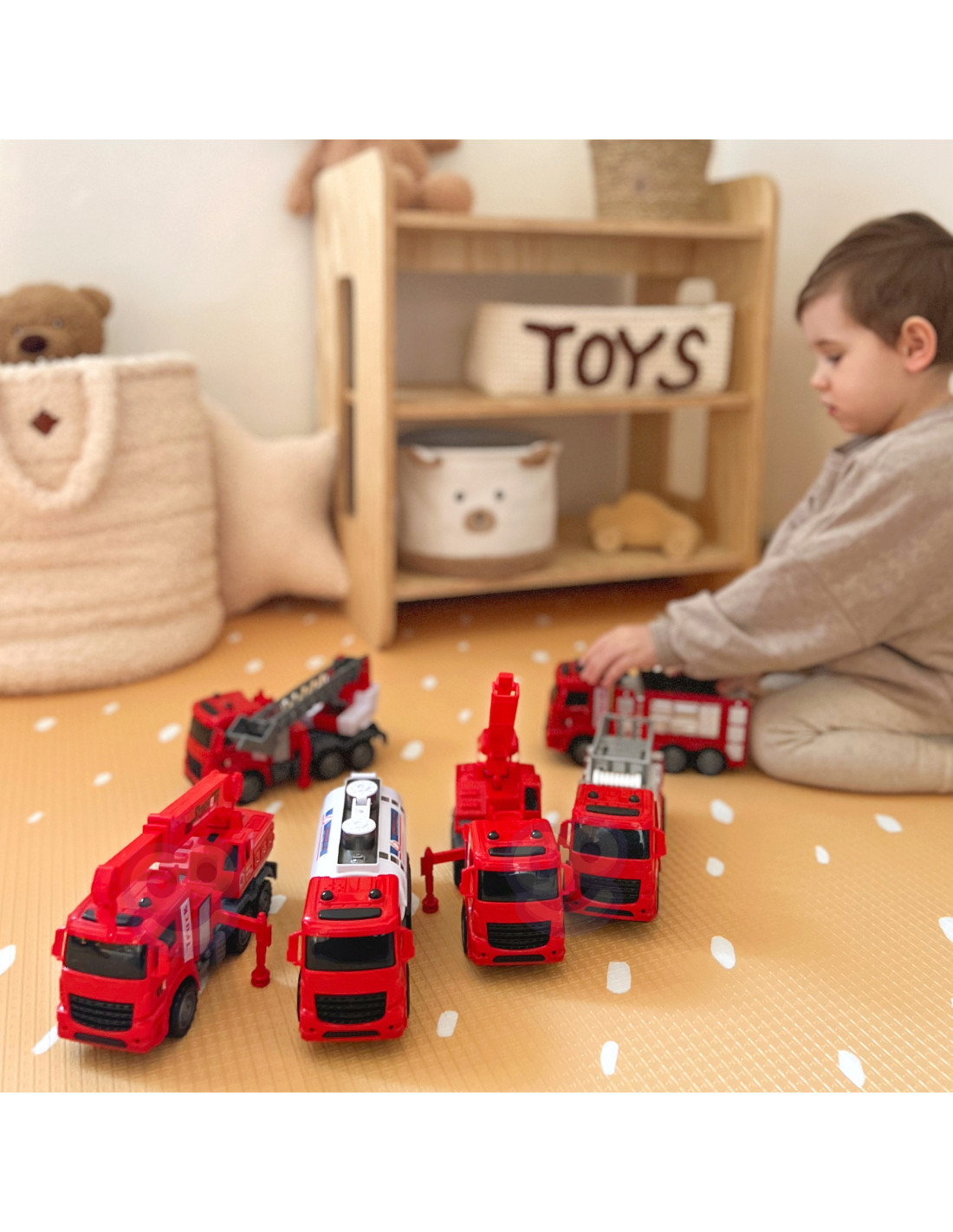 WIELKI Zestaw 6w1 samochodów straży pożarnej od marki WOOPIE to idealny zestaw dla małych miłośników akcji ratunkowych i przygód strażackich! Zestaw składa się z dużych modeli różnych wozów strażackich, które odwzorowują prawdziwe pojazdy wykorzystywane w akcjach gaśniczych i ratunkowych. Dzięki tym zabawkom dzieci mogą wcielić się w rolę bohaterów ratujących świat i przeżywać ekscytujące chwile pełne akcji. ten wspaniały duży zestaw nie tylko dostarczy Twojemu dziecku niezliczonych godzin fantastycznej zabawy, ale także zainspiruje jego wyobraźnię i kreatywność. Zestaw to świetny sposób, aby w kreatywny sposób rozwijać wyobraźnię dziecka, ćwiczyć współpracę i budować pewność siebie. Co więcej, zabawa strażakiem to także doskonała okazja do nauki wartości, takich jak odwaga, pomoc innym i odpowiedzialność.