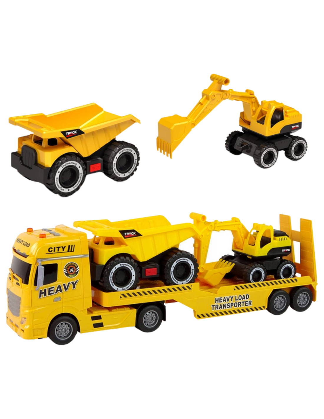 - - 3 pojazdy budowlane w zestawie – laweta, koparka i wywrotka dają wiele możliwości zabawy