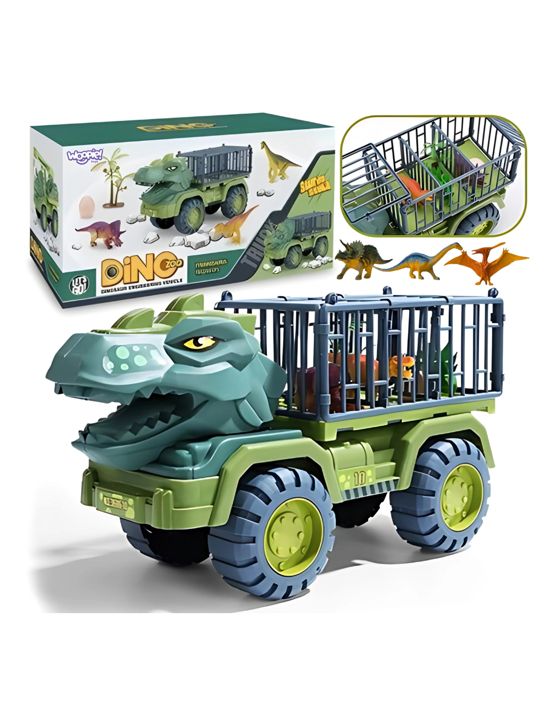 Prezentujemy wyjątkowy Transporter w kształcie dinozaura od marki Woopie — połączenie imponującej ciężarówki z motywem T‑Rex, które przenosi zabawę na zupełnie nowy poziom. Ten duży pojazd to nie tylko transport dla figurek, ale pełnoprawna scena narracyjna, w której dziecko może tworzyć własne przygody jurajskie i motoryzacyjne. Dzięki otwieranym klatkom, detalom w stylu łusek i pazurów oraz przestrzeni ładunkowej, transporter wygląda spektakularnie i angażuje w kreatywną zabawę. Jego zaletą jest solidność konstrukcji i szczegółowe wykonanie. Korpus pojazdu stylizowany jest na skórę dinozaura — z fakturą łusek, efektowną paszczą i grzebieniem grzbietowym. Kolory dobrane są tak, by podkreślać naturalistyczny charakter maszyny, a jednocześnie wyglądać atrakcyjnie w dziecięcym pokoju. Materiały użyte do produkcji są trwałe, odporne na uderzenia i bezpieczne dla dzieci — bez ostrych krawędzi i z zaokrąglonym wykończeniem. Same figurki dinozaurów dołączone do zestawu są lekkie i dopasowane do małych rąk, co pozwala na łatwą manipulację i płynną zabawę. To zabawka, która łączy motyw dinozaura i transportu, stymuluje wyobraźnię, rozwija zdolności manualne, logiczne myślenie i radość z odgrywania własnych historii.