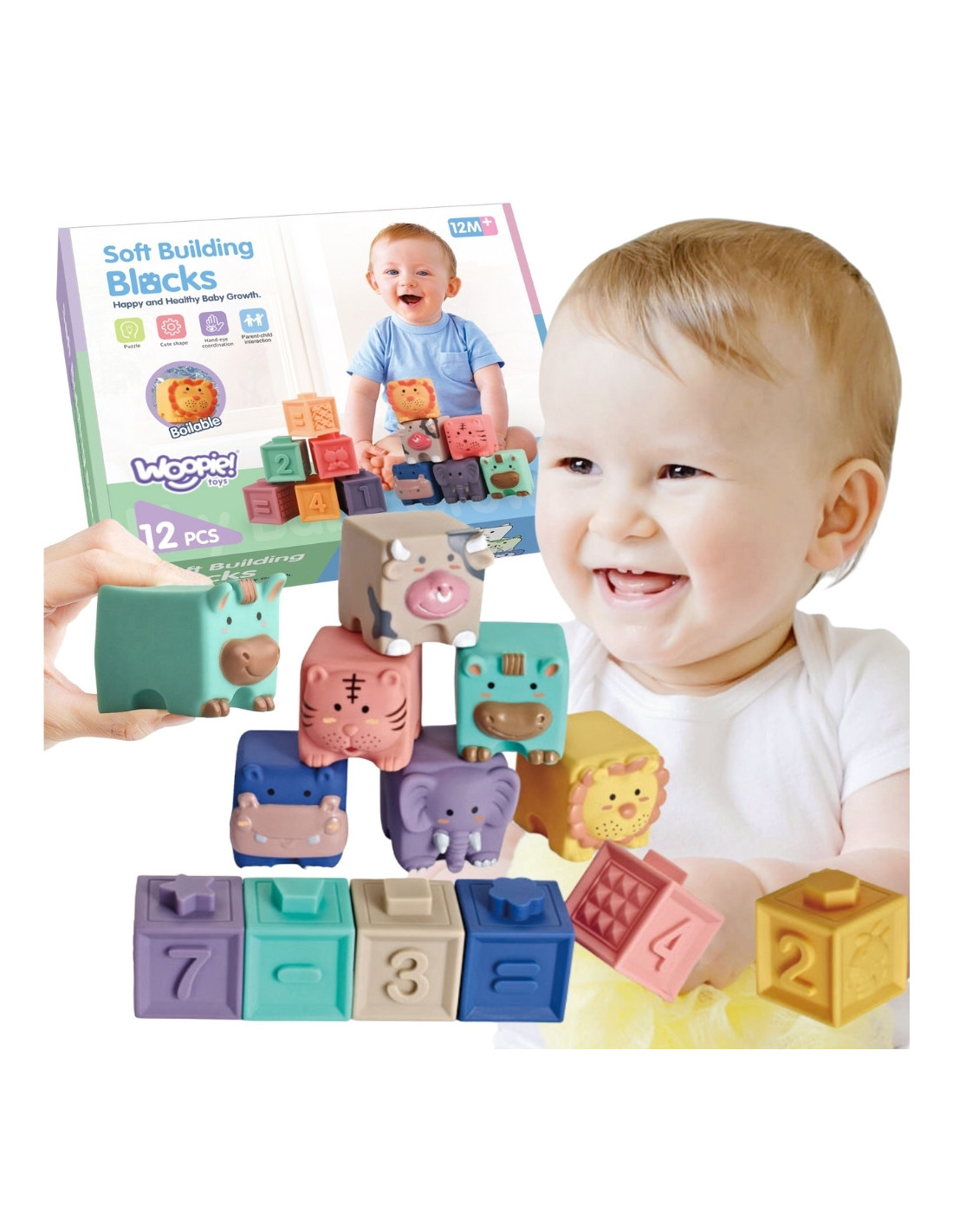 WOOPIE BABY Klocki Sensoryczne Układanka do Ściskania Dźwięk Nauka Liczenia 12 el.