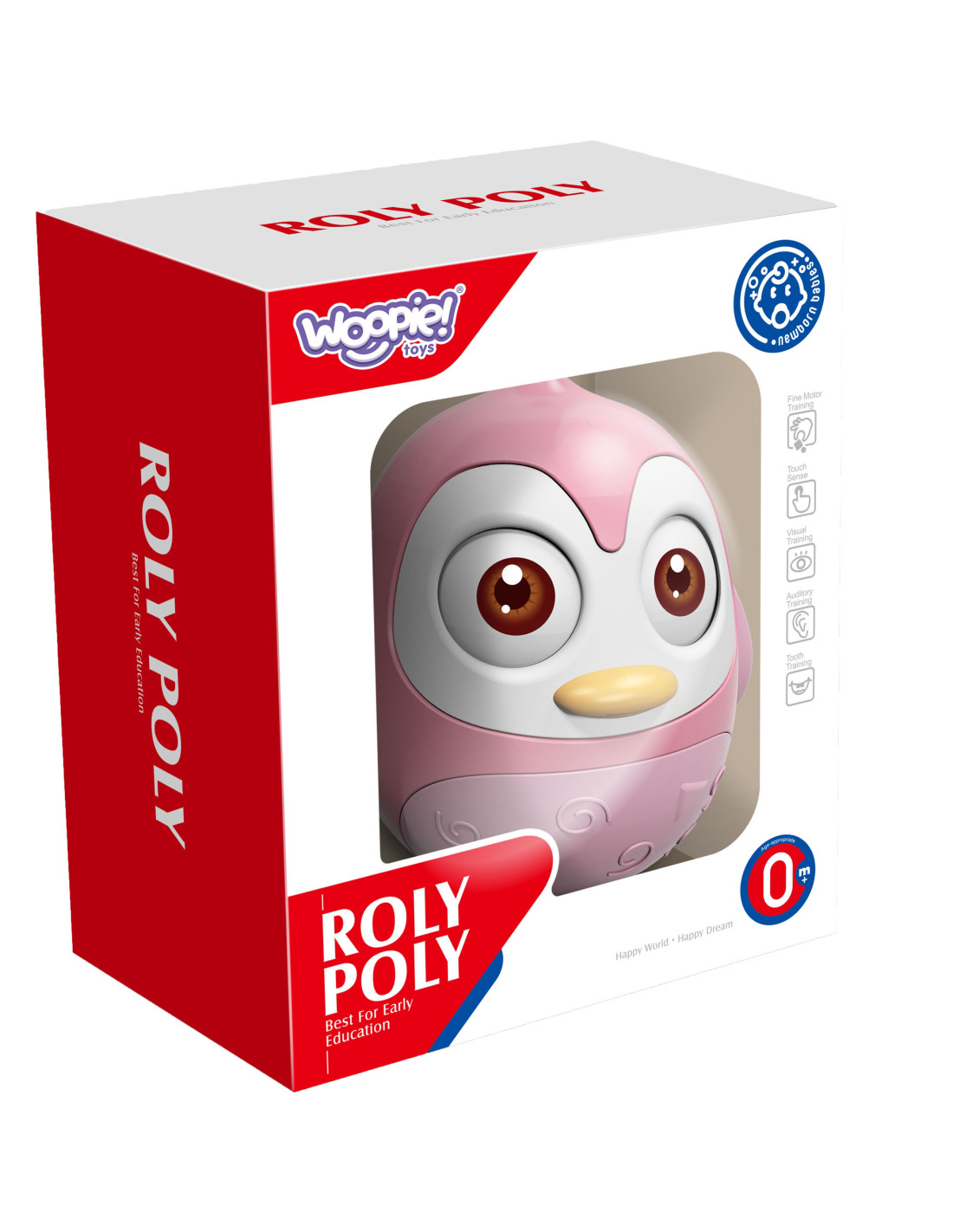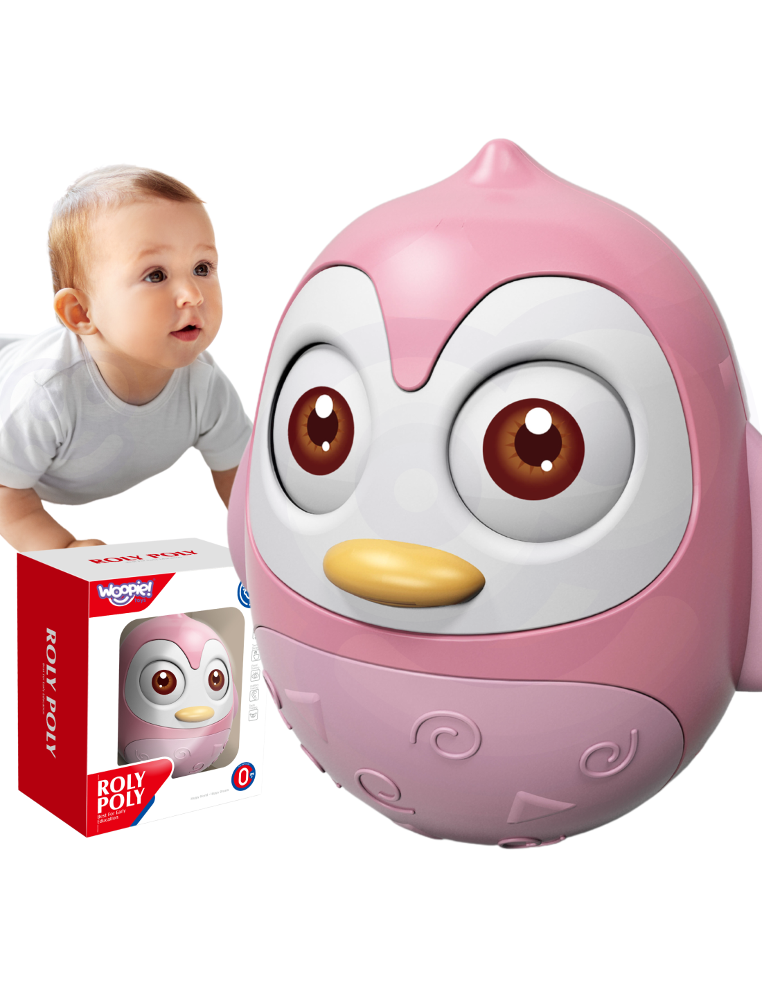 Wańka-Wstańka Pingwinek to zabawka sensoryczna od marki WOOPIE. Jest to doskonałe narzędzie do rozwijania koordynacji ruchowo-wzrokowej niemowląt i małych dzieci. Stworzona z myślą o maluszkach, które zaczynają raczkować lub spędzają czas leżąc na brzuszku, doskonale stymuluje ich zmysły. Pingwinek posiada miękkie, gumowe skrzydełka, które mogą przynieść ulgę podczas ząbkowania, stanowiąc nie tylko zabawkę, ale i praktyczne zastosowanie. W przemyślanej formie i kolorystyce zabawka przyciąga uwagę dziecka, stymulując jednocześnie jego zmysł wzroku.