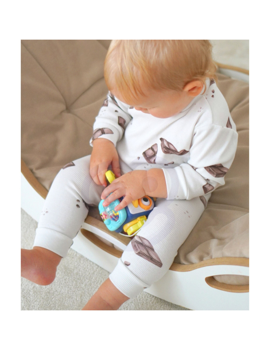 - Zawiera wiele różnych elementów, które stymulują zmysły dziecka, takie jak teksturowane powierzchnie i dźwięk