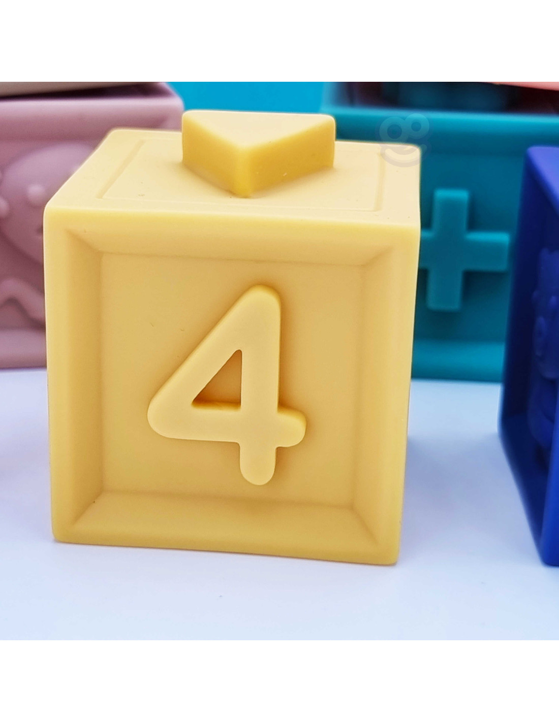 WOOPIE Układanka Klocki Sensoryczne zaciekawią każdego malucha. Dzięki ciekawym kształtom, kolorom i możliwości wydawania dźwięku przez ściśnięcie doskonale stymulują rozwój koordynacji wzrokowo-słuchowej i motorycznej dziecka. Klocki posiadają wypukłe kształty, które pozwalają na dopasowywanie ich do siebie i łączenie. Każdy bok klocka jest inny. Znajdują się na nich wypukłe kształty, zwierzątka i cyferki do nauki dla starszych dzieci. Klocki wydają dźwięki podczas ściskania. Dzięki swojej budowie sprawdzą się również doskonale jako gryzak. Produkt w stonowanej kolorystyce przeznaczony dla dzieci od 6 miesiąca życia.