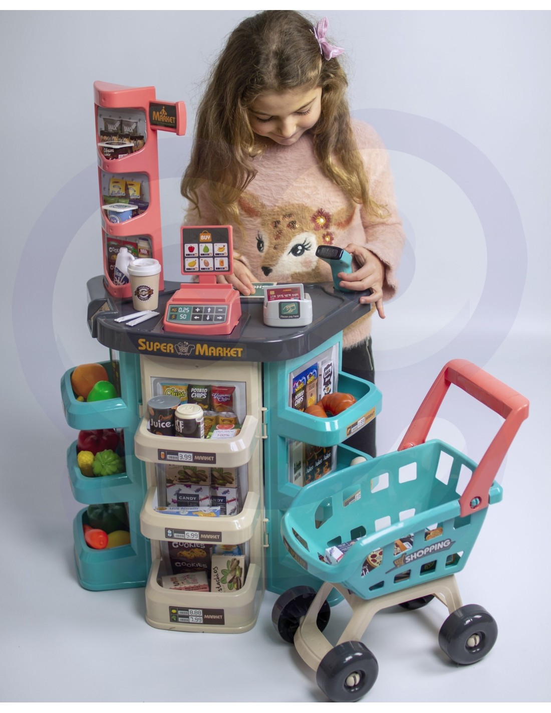 WOOPIE Sklep Supermarket i Wózek Koszyk Sklepowy Kasa Waga Skaner 47 akc