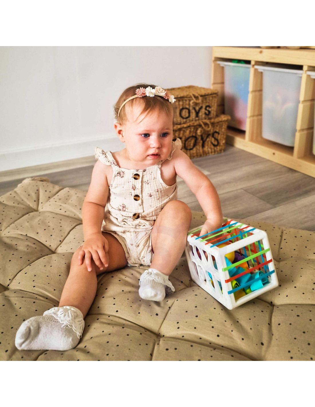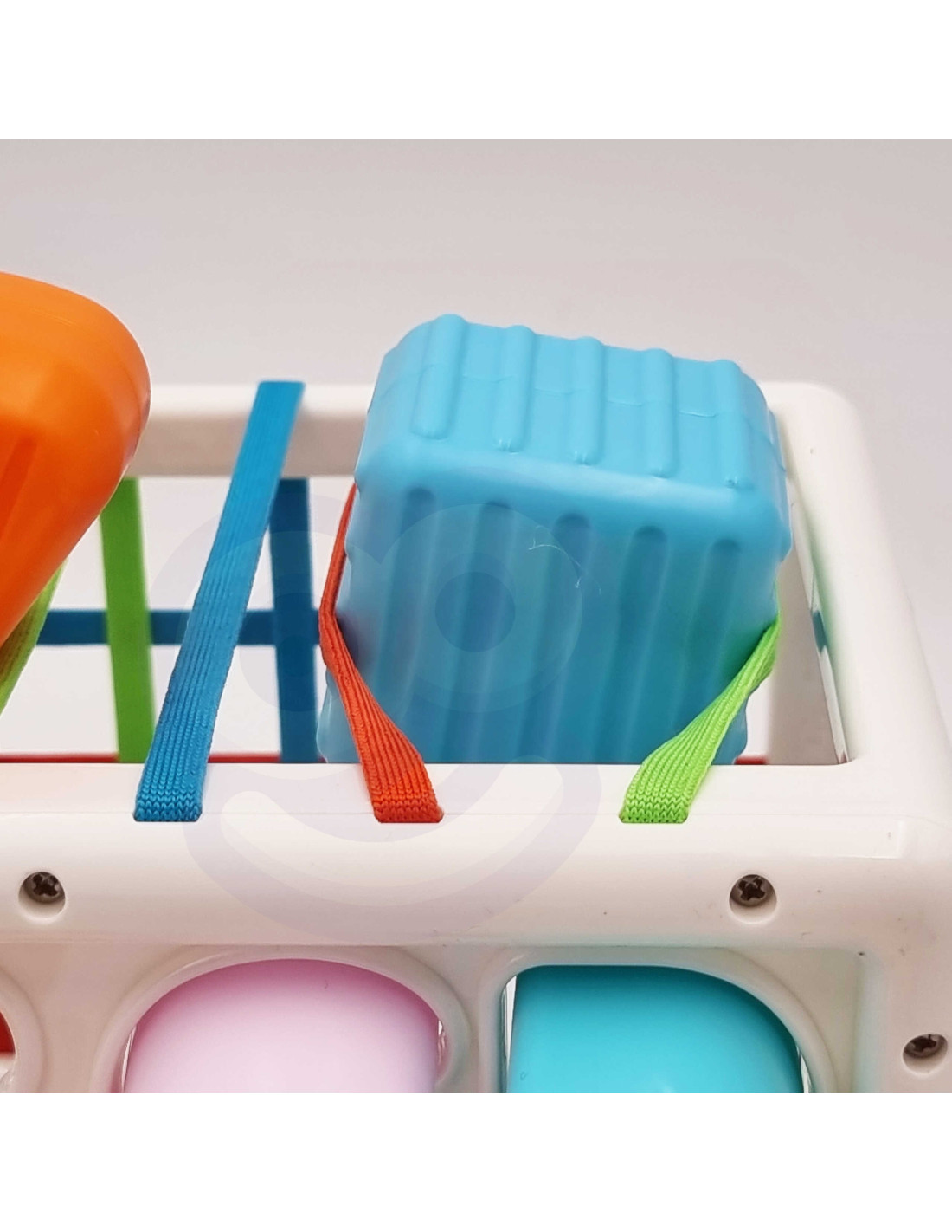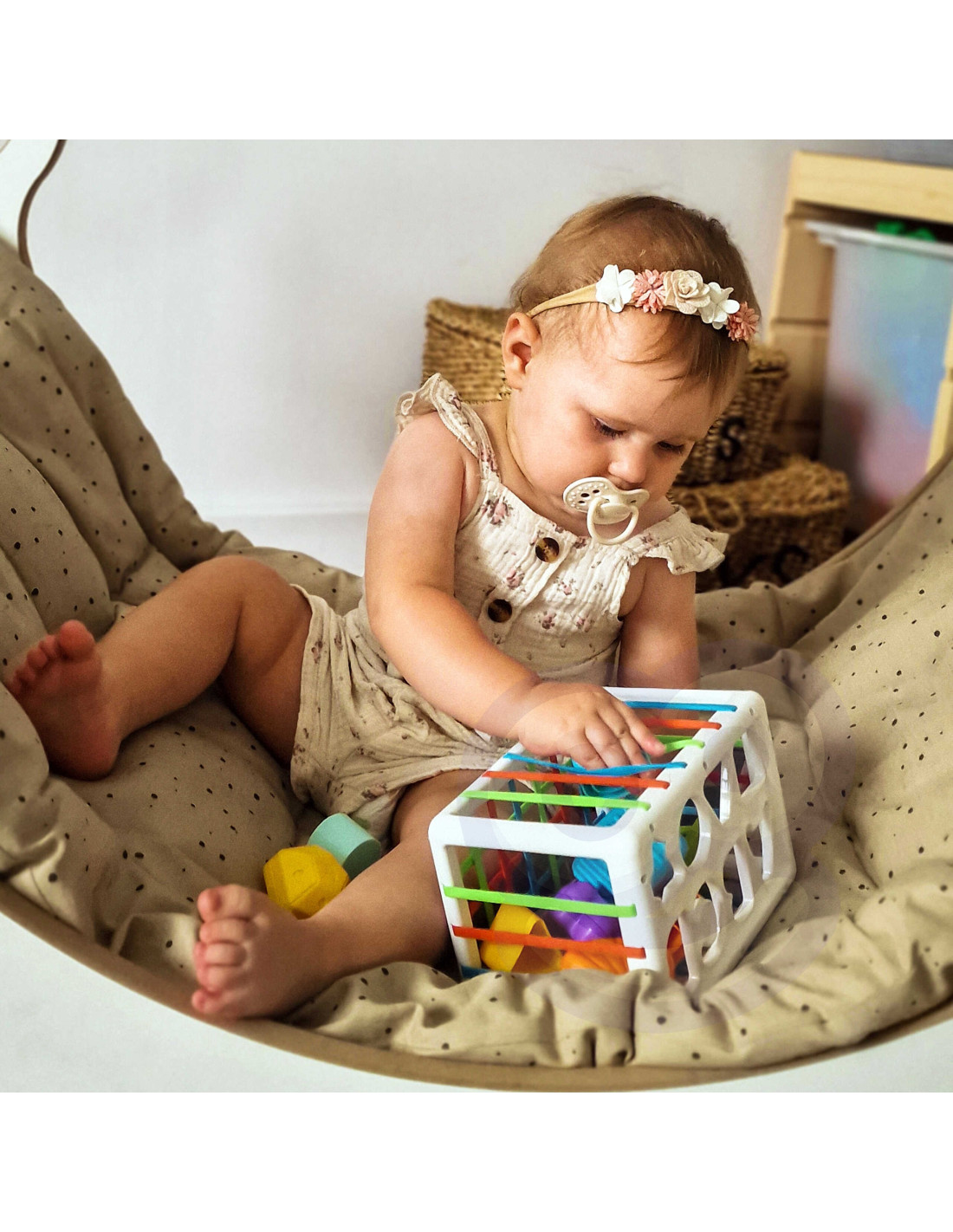 Elastyczna Kostka Sensoryczna od marki WOOPIE pobudzi rozwój Twojego dziecka! Zabawa dziecka polega na wkładaniu i wyjmowaniu elementów z edukacyjnej kostki, dodatkowo jedna ściana to klasyczny sorter z dopasowaniem konkretnych figur geometrycznych i liter. Dziecko podczas zabawy rozwija zmysły oraz poprawia zdolności manualne. Każdy z klocków wyróżnia się, co budzi ciekawość dziecka na tyle, by chciało je wyciągnąć i włożyć z powrotem do sortera. Zabawka rozwija sensorykę i umysł, a także zachęca do eksperymentowania. Dodatkowo, gdy dziecko podrośnie klocki można wykorzystać do nauki kolorów, kształtów oraz liter. Niezbędna zabawka dla dziecka we wczesnym etapie życia!