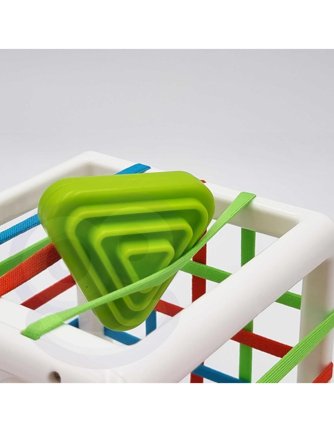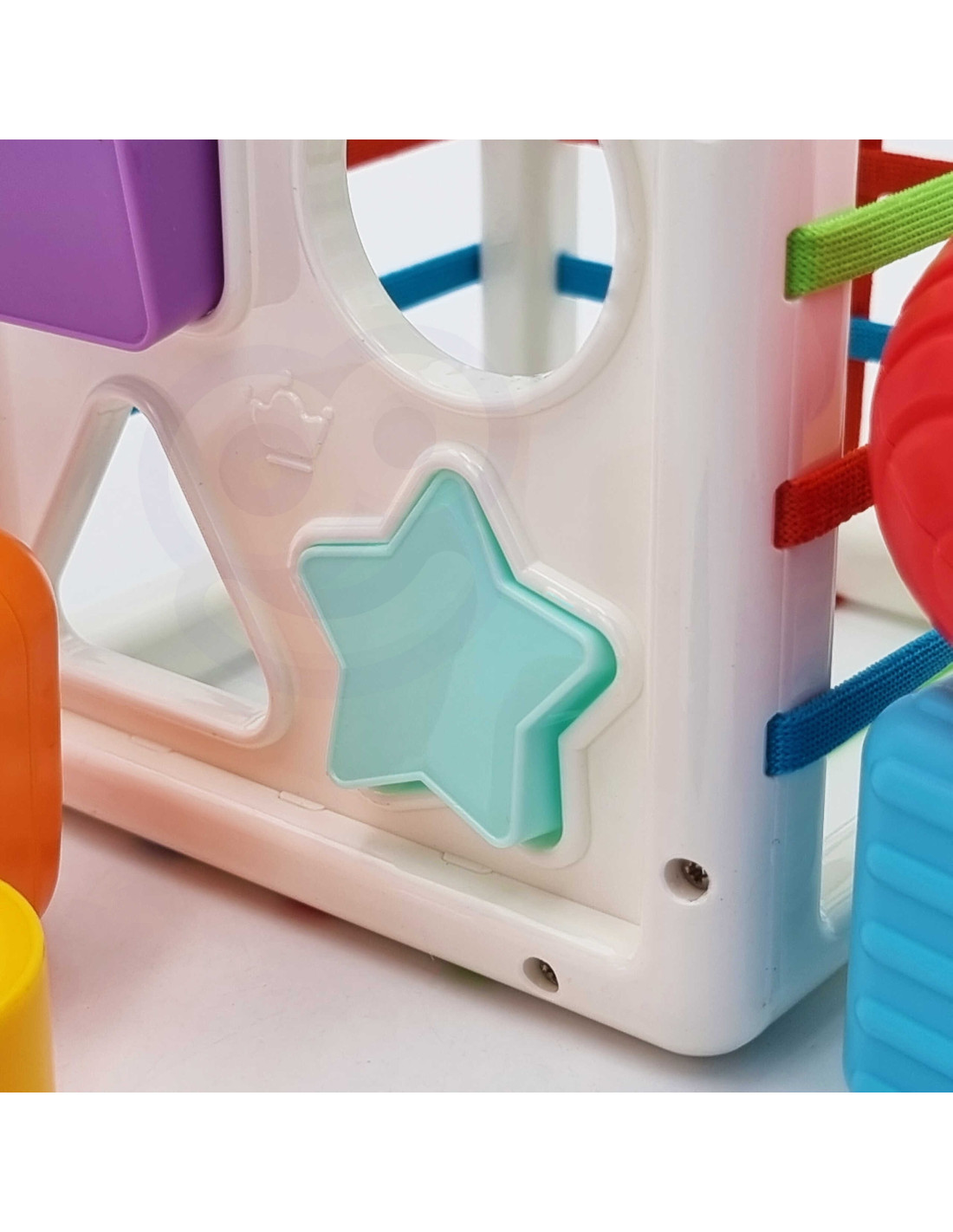 - - w zestawie: kostka-sorter + 11 różnorodnych twardych klocków,
