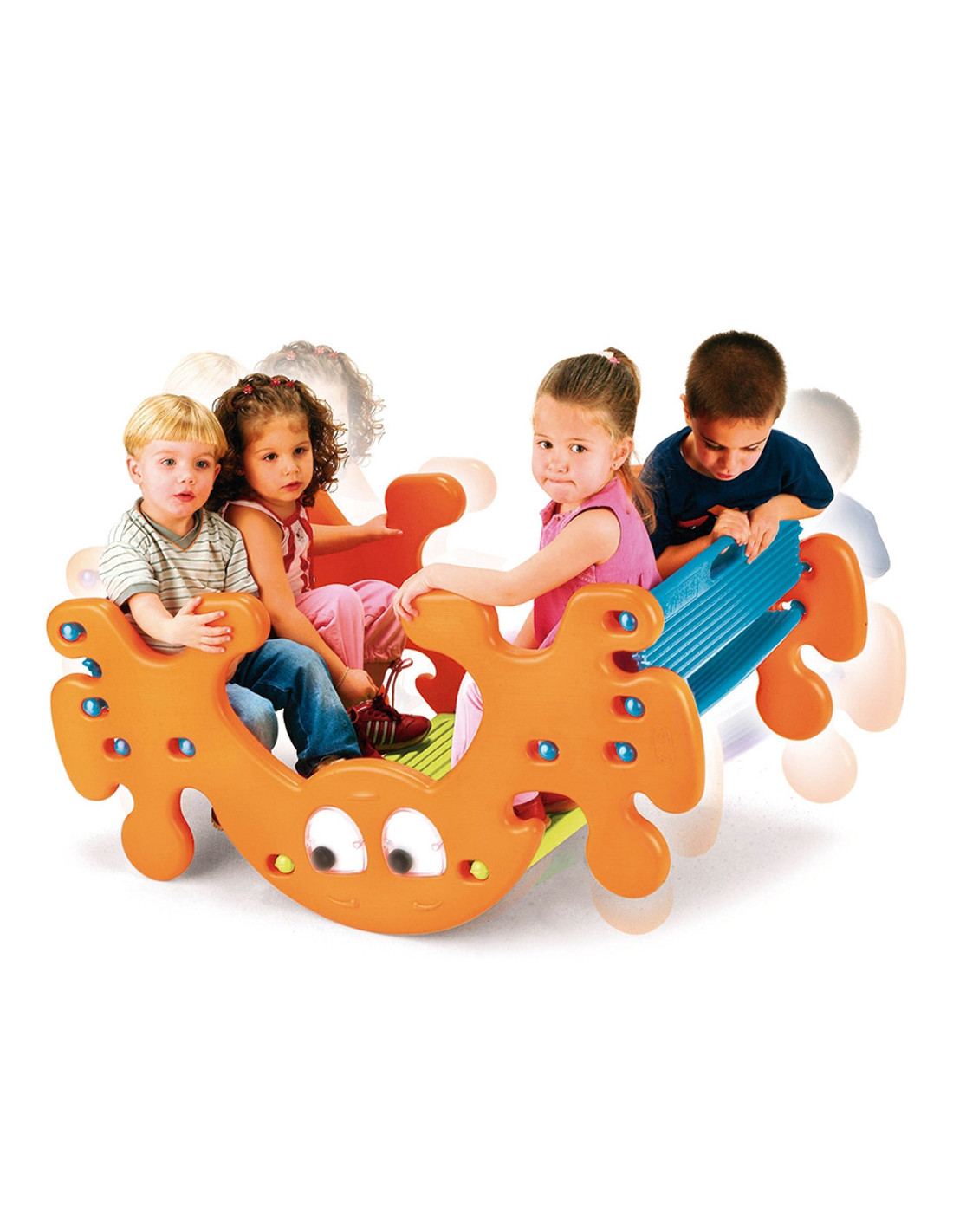Wielofunkcyjny stół piknikowy i bujak w jednym od renomowanej marki FEBER to doskonałe rozwiązanie do ogrodu, na taras lub do pokoju dziecięcego. Kształt uroczych duszków zachęca maluchy do aktywnej zabawy. Produkt zaprojektowano z myślą o podwójnej funkcjonalności: w podstawowej pozycji służy jako wygodny stół piknikowy z ławeczkami, idealny do rysowania, zabawy czy jedzenia przekąsek. Po odwróceniu do góry nogami natychmiast zmienia się we wspaniały bujak, który może bezpiecznie pomieścić jednocześnie aż czworo dzieci. Produkt charakteryzuje się bardzo łatwym montażem, który nie wymaga użycia żadnych narzędzi. Dzięki wykonaniu z najwyższej jakości materiałów zabawka jest wysoce odporna na działanie promieni słonecznych oraz zmiany temperatur, co gwarantuje zachowanie pięknych, żywych kolorów przez bardzo długi czas.