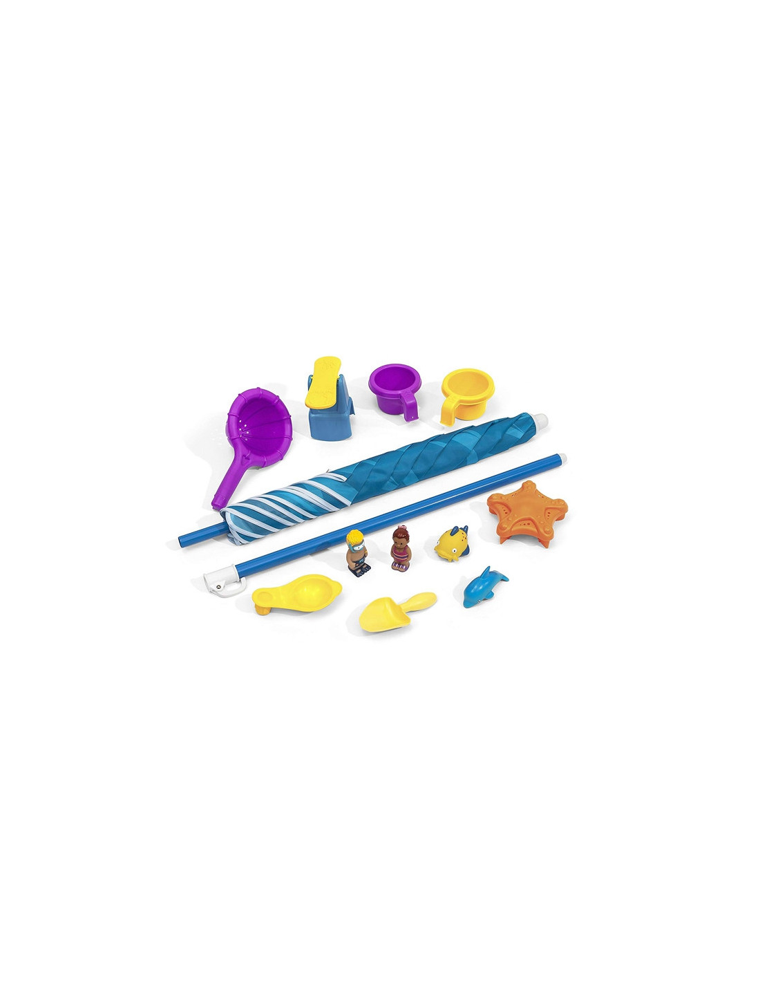 • Akcesoria do zabawy w zestawie: sitko, deska do skoków, do wody, 3 kubeczki, 4 figurki, spinner wodny rozgwiazda.