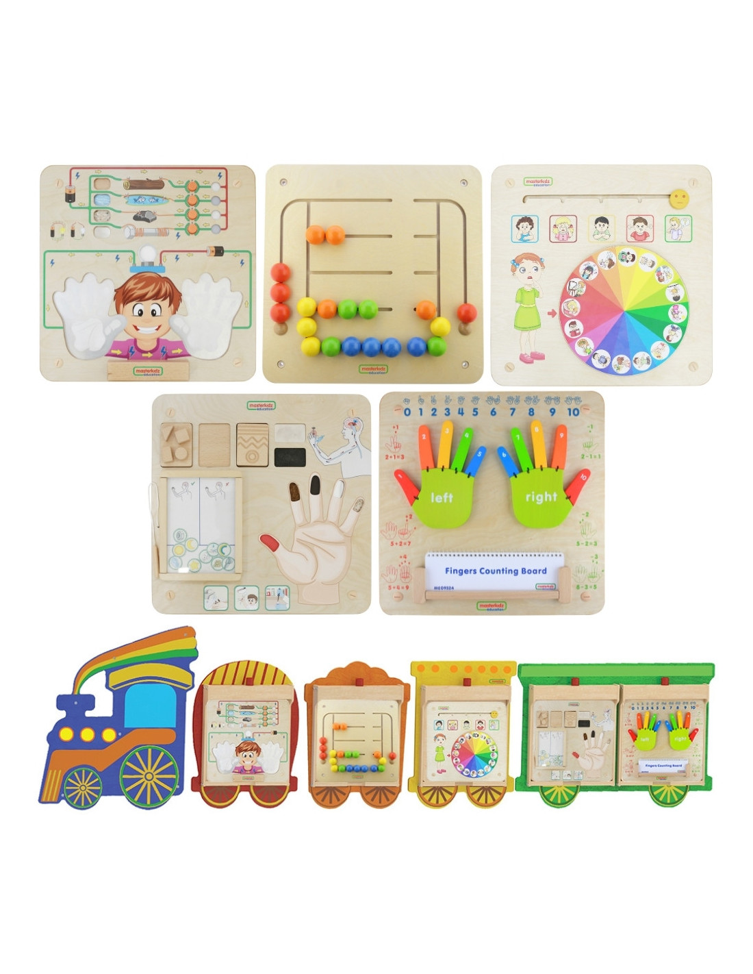 MASTERKIDZ Zestaw Tablic Pociąg 5w1 Tablica Sensoryczna Motoryczna Nauka Zmysłów i Emocji