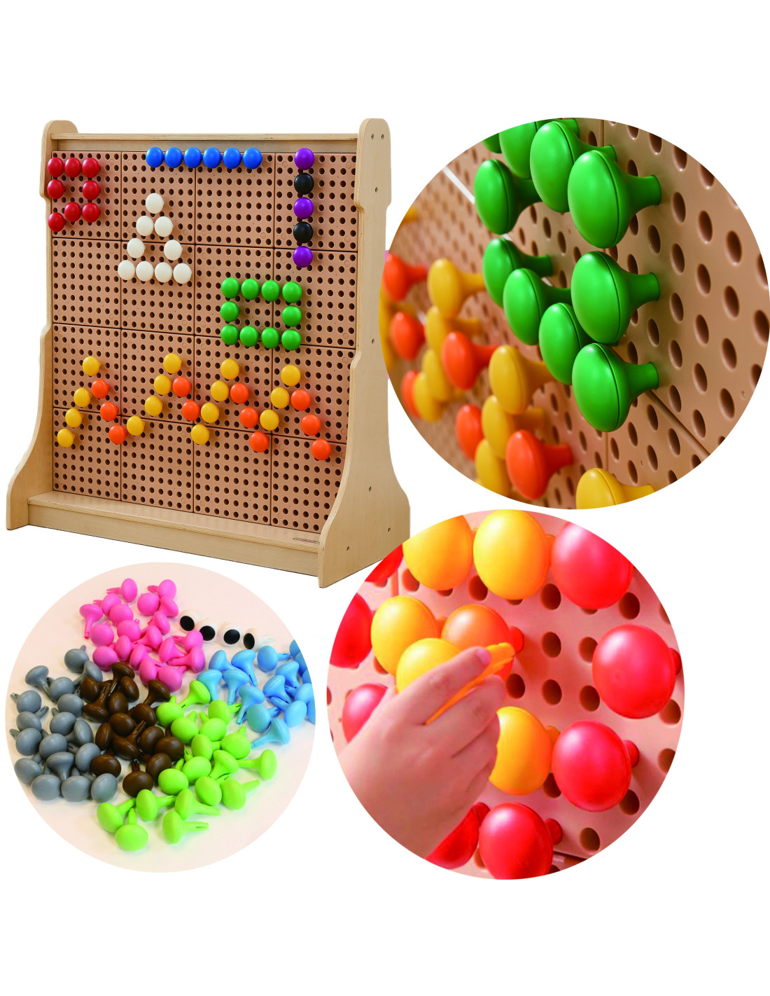 Dzięki kolorowym kołeczkom Masterkidz, stworzysz na swojej tablicy niezapomniane konstrukcje lub obrazki. Jedynym ograniczeniem jest Twoja wyobraźnia, więc puść jej wodze i stwórz coś pięknego! Kołeczki występują w 6 kolorach, więc pozwalają na tworzenie przeróżnych kompozycji.