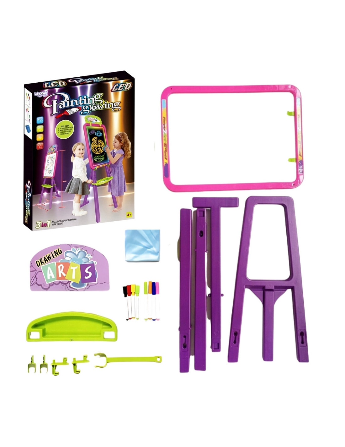 ✔️ 3w1–magnetyczna, suchościeralna, malowanie światłem (fluorescencyjne pisaki LED)