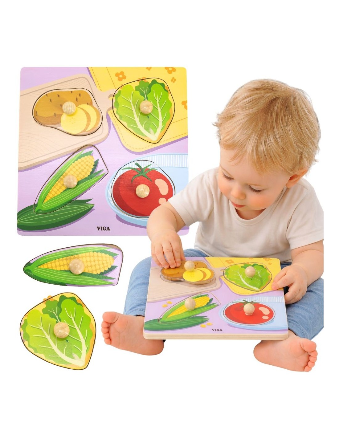 VIGA Drewniane Puzzle z Pinezkami Warzywa