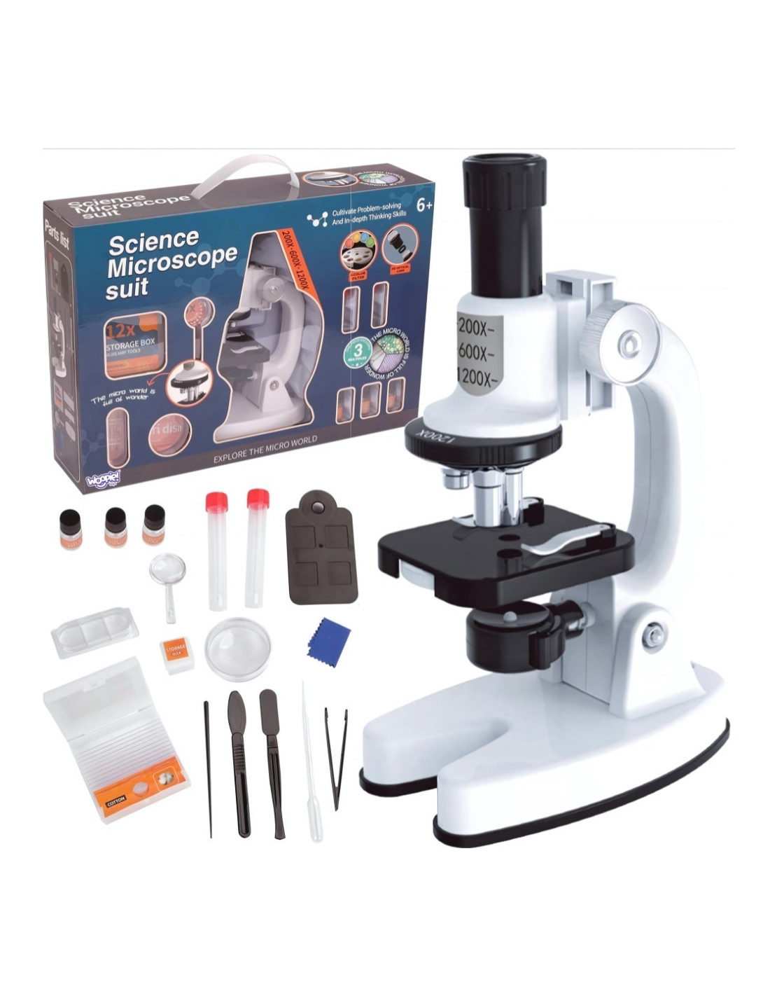 Otwórz przed swoim dzieckiem drzwi do niewidzialnego świata z rozbudowanym zestawem mikroskopu! To kompletne laboratorium w zasięgu ręki, stworzone z myślą o małych odkrywcach. Mikroskop o imponującym powiększeniu 1200x, w połączeniu z bogatym zestawem profesjonalnych akcesoriów i możliwością podłączenia smartfona, gwarantuje niezliczone godziny edukacyjnej zabawy. Pozwól swojemu dziecku rozwijać ciekawość, precyzję i pasję do nauki, odkrywając fascynujące detale otaczającego świata – od komórek roślinnych po struktury włókien. Ten zestaw to idealny prezent, który inspiruje do myślenia, badania i dzielenia się swoimi niezwykłymi odkryciami!
