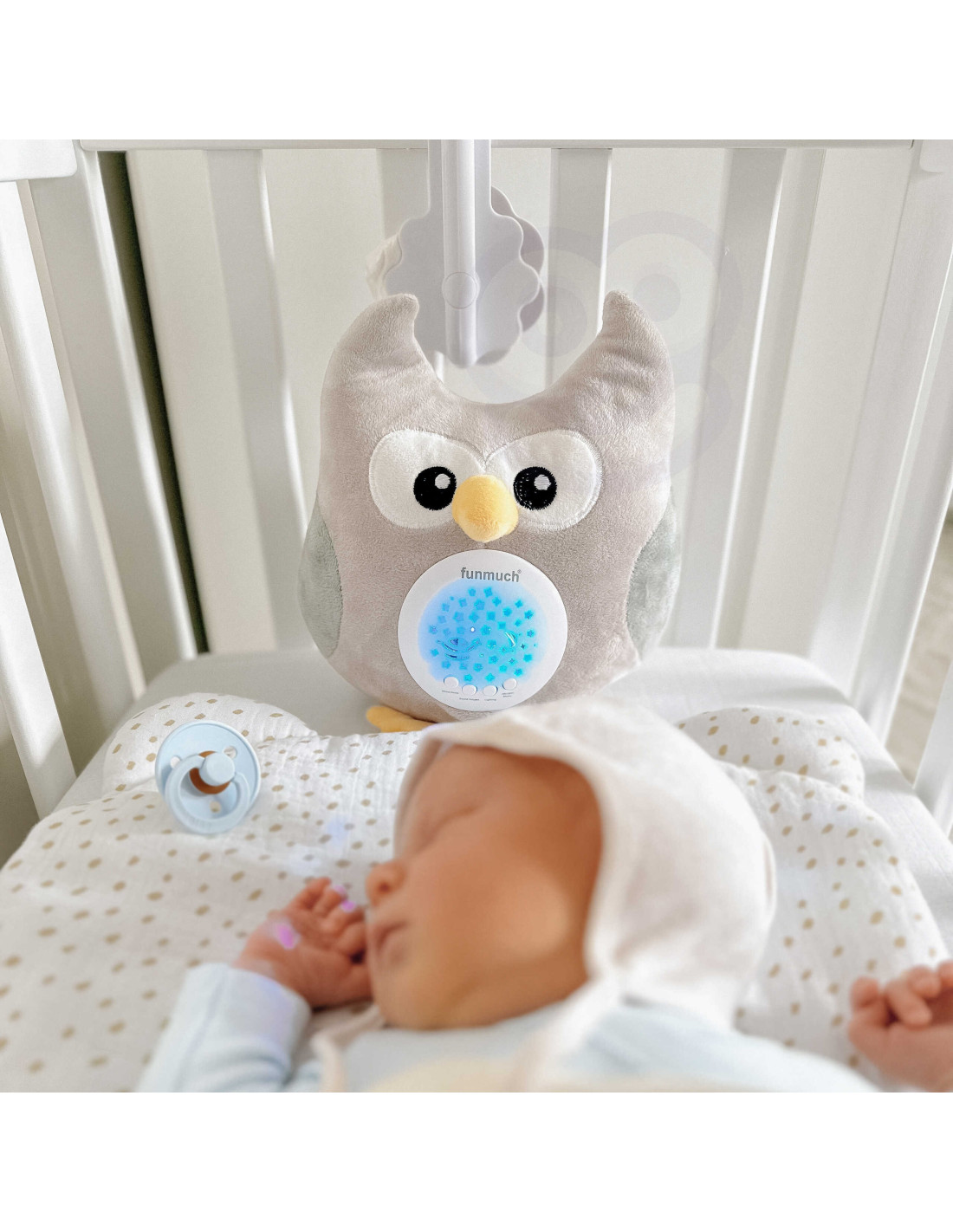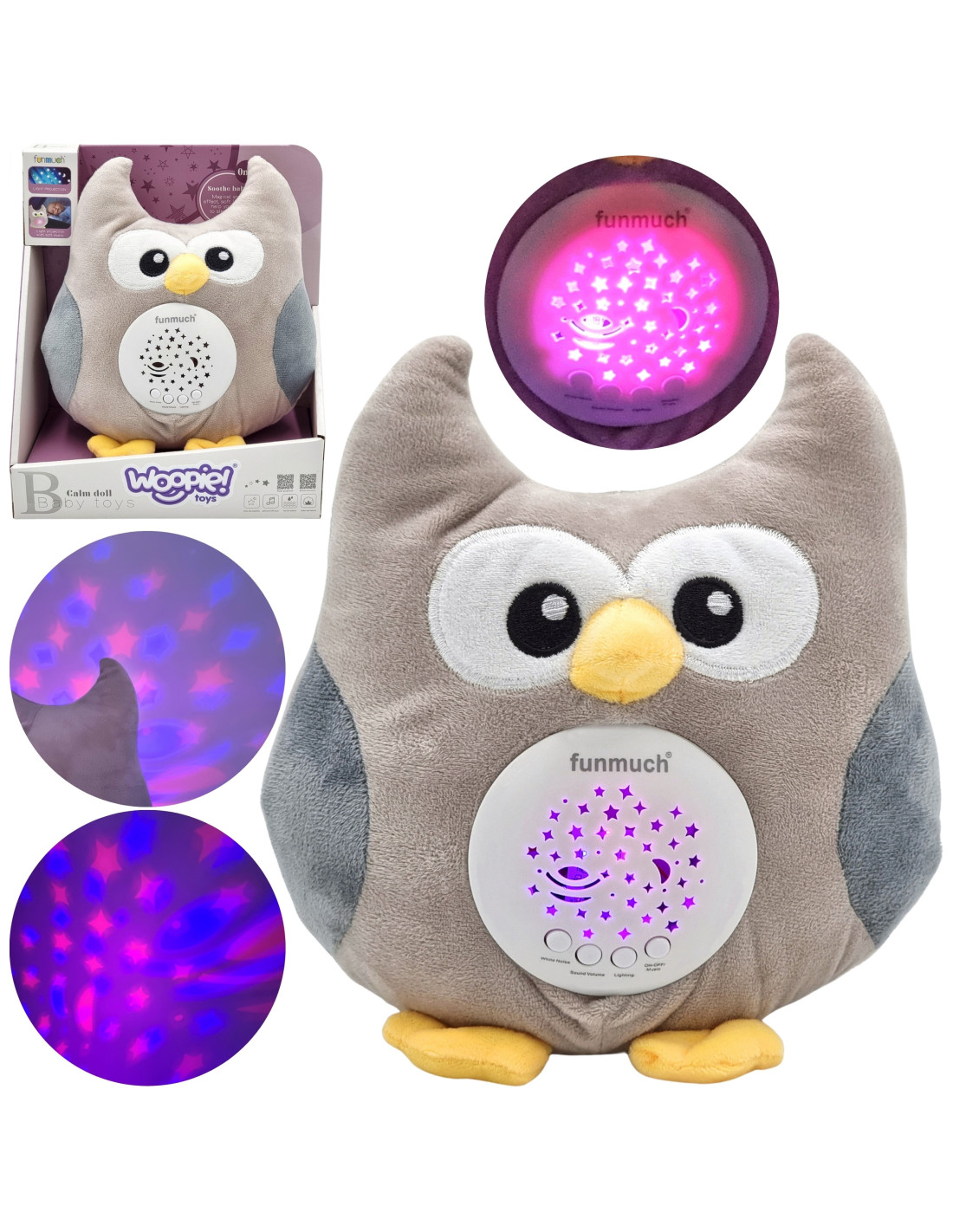 Pluszowy Usypiacz Sówka od marki Woopie, będzie towarzyszem snu twojego maluszka. Maskotka jest idealna dla niemowląt i starszych dzieci, które nie lubią same zasypiać. Sowa będzie idealnym przyjacielem dobrych snów i wybawcą od potworów z szafy. Przytulanka posiada 4 funkcje. Gdy ją włączymy usłyszymy przyjemne melodie, a brzuszek zacznie mienić się różnymi kolorami. Po naciśnięciu przycisku "White Nose" usłyszymy różne szumy czy bicie serduszka. Zabawka posiada, również aż 10 różnych kołysanek oraz możliwość ustawienia 3 poziomów głośności, aby móc dostosować dźwięk do upodobań maluszka i mieć pewność, że nie obudzi się podczas snu. Zabawka jest przystosowana dla niemowląt, dlatego jest wypełniona miękką watą. Dodatkowo pluszaka można bezpiecznie oraz łatwo czyścić, wyjmując mechanizm i łatwo go potem montując. Dzięki temu starsze dziecko będzie mogło używać zabawki jako maskotki bez mechanizmu. Każde dziecko zakocha się w tej sówce!