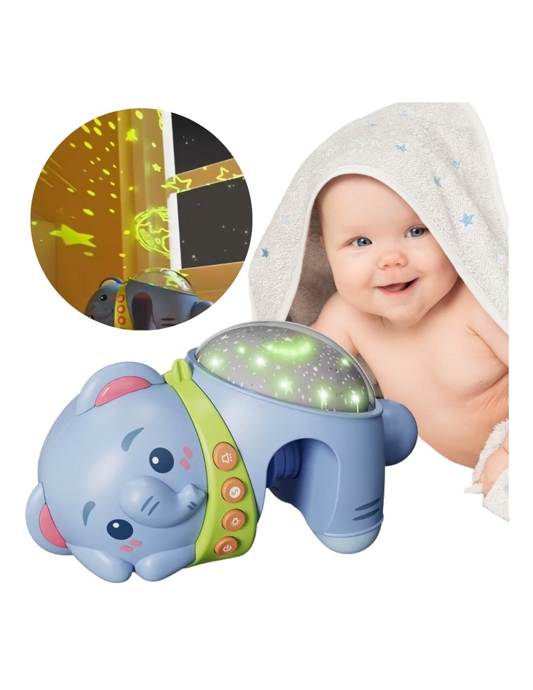 WOOPIE BABY Projektor Gwiazd Rzutnik Lampka Nocna dla Dzieci Słonik
