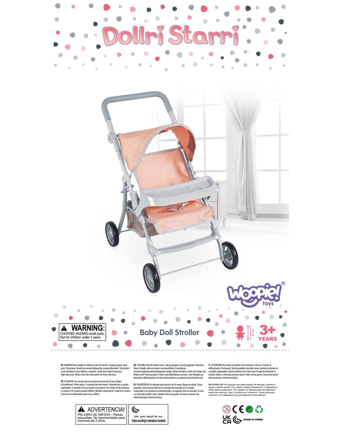 Wózek dla lalek marki Woopie to idealny wybór dla każdej małej miłośniczki zabawy w dom. Wyróżnia się lekką, ale bardzo stabilną ramą, co zapewnia wygodę i bezpieczeństwo podczas użytkowania. Wyposażony w podnóżek, budkę chroniącą przed słońcem, pasy bezpieczeństwa oraz praktyczny koszyk na drobiazgi, gwarantuje pełną funkcjonalność i komfort. Dodatkowo posiada miękką rączkę, która ułatwia prowadzenie, oraz ciche, przyczepne piankowe koła, idealne zarówno do domu, jak i na spacer. Po zakończonej zabawie wózek można łatwo złożyć, co pozwala zaoszczędzić miejsce podczas przechowywania. Stylowy design czyni go wyjątkowym dodatkiem do każdej lalki.