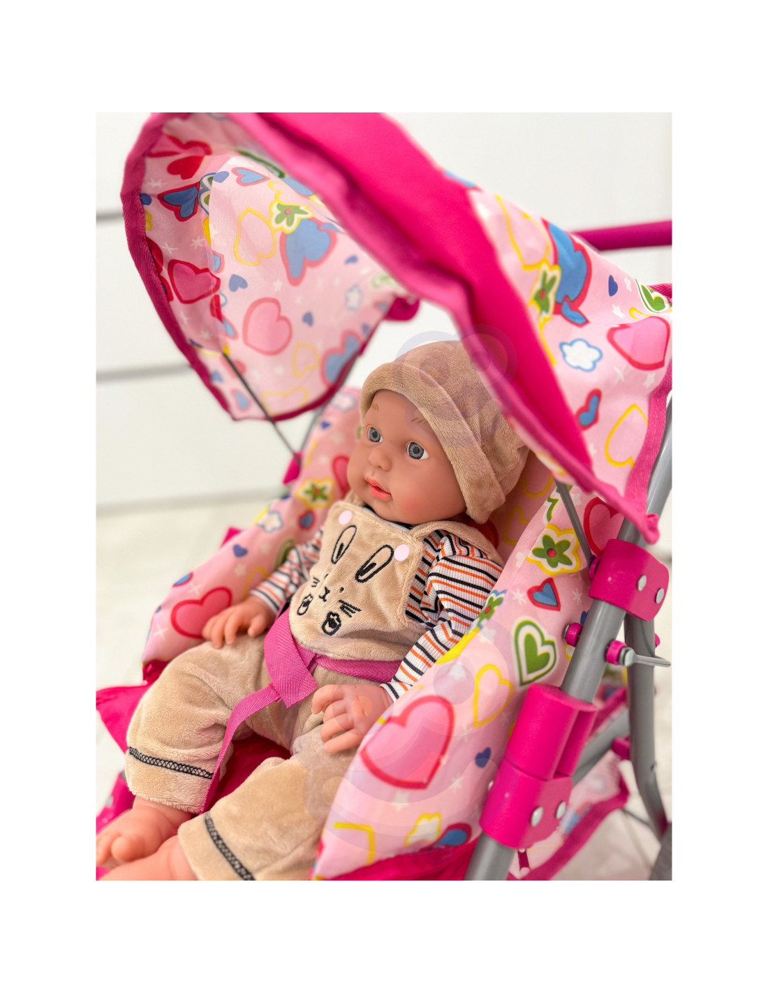 Wózek dla lalek marki Woopie to idealny wybór dla każdej małej miłośniczki zabawy w dom. Wyróżnia się lekką, ale bardzo stabilną ramą, co zapewnia wygodę i bezpieczeństwo podczas użytkowania. Wyposażony w podnóżek, budkę chroniącą przed słońcem, pasy bezpieczeństwa oraz praktyczny koszyk na drobiazgi, gwarantuje pełną funkcjonalność i komfort. Dodatkowo posiada miękką rączkę, która ułatwia prowadzenie, oraz ciche, przyczepne piankowe koła, idealne zarówno do domu, jak i na spacer. Po zakończonej zabawie wózek można łatwo złożyć, co pozwala zaoszczędzić miejsce podczas przechowywania. Stylowy design czyni go wyjątkowym dodatkiem do każdej lalki.