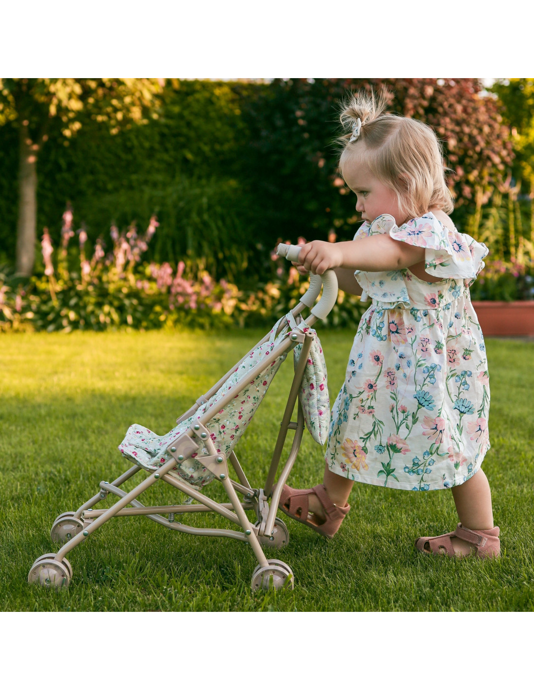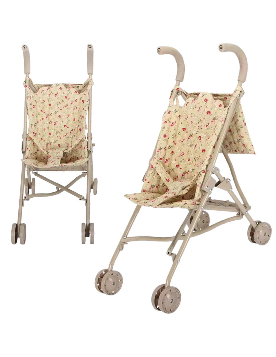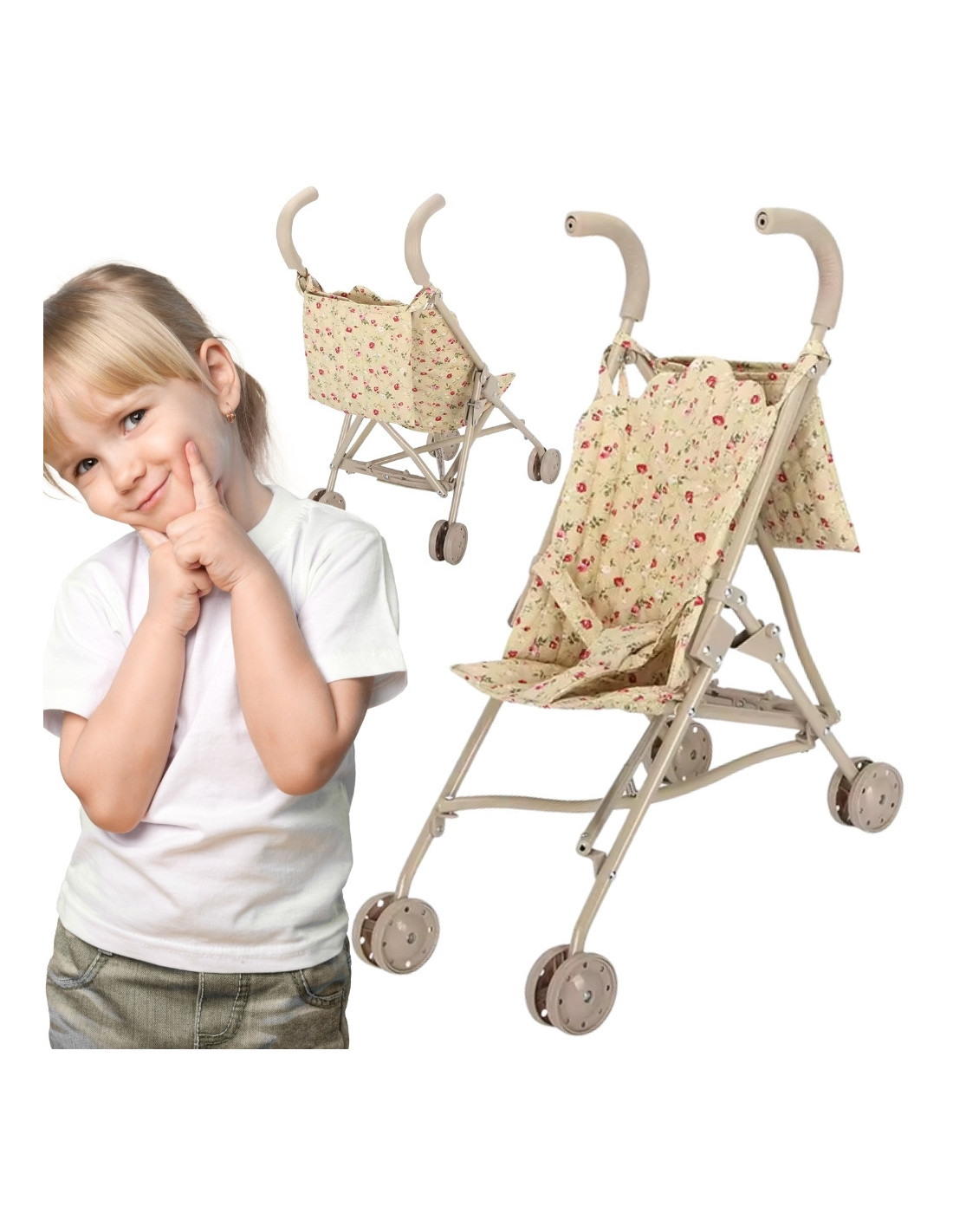 Wózek spacerówka dla lalek w kwiatowy wzór od marki Woopie to idealna zabawka dla każdej dziewczynki i chłopca, którzy uwielbiają bawić się w dom i opiekować swoimi ulubionymi laleczkami lub pluszakami. Dzięki lekkiej, składanej konstrukcji jest łatwy do przenoszenia i świetnie sprawdzi się zarówno w domu, jak i podczas spacerów na świeżym powietrzu. Wygodne uchwyty dopasowane do dziecięcych dłoni oraz podwójne kółka zapewniają komfort jazdy. Stylowa tapicerka w kremowym kolorze z uroczym kwiatowym wzorem dodaje mu wyjątkowego charakteru. To wspaniała propozycja na prezent, który rozwija wyobraźnię, empatię i zdolności manualne dziecka.
