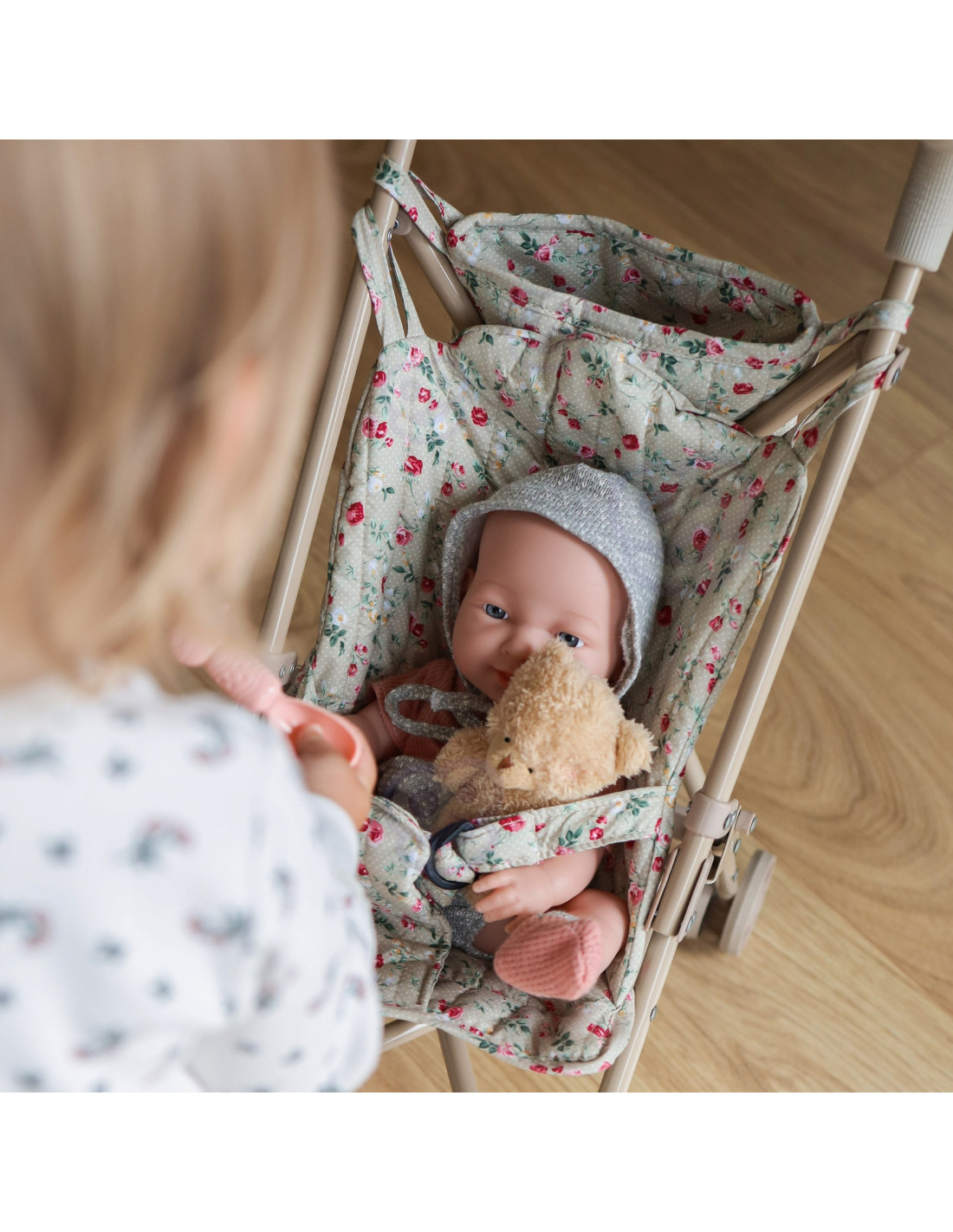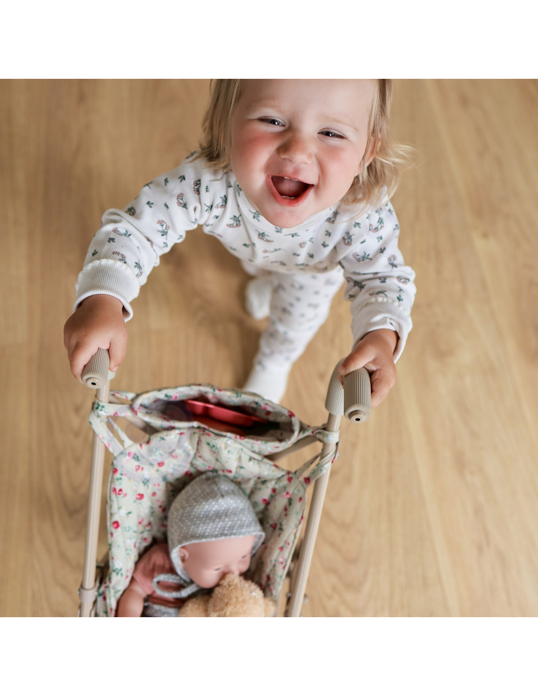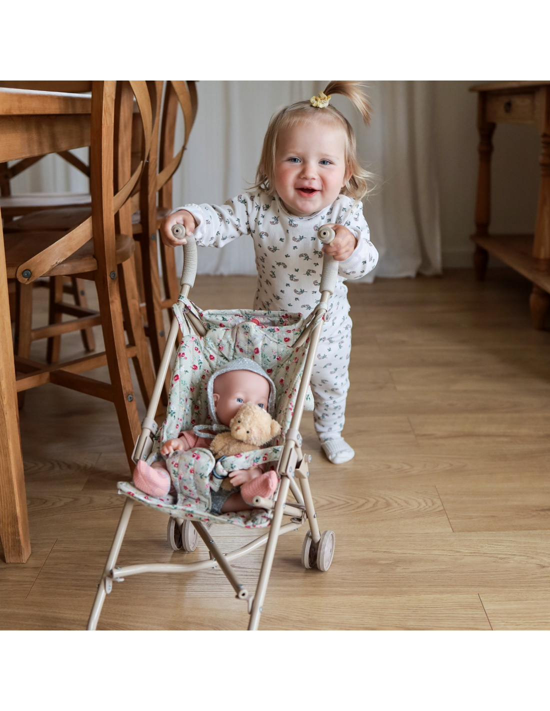 Wózek spacerówka dla lalek w kwiatowy wzór od marki Woopie to idealna zabawka dla każdej dziewczynki i chłopca, którzy uwielbiają bawić się w dom i opiekować swoimi ulubionymi laleczkami lub pluszakami. Dzięki lekkiej, składanej konstrukcji jest łatwy do przenoszenia i świetnie sprawdzi się zarówno w domu, jak i podczas spacerów na świeżym powietrzu. Wygodne uchwyty dopasowane do dziecięcych dłoni oraz podwójne kółka zapewniają komfort jazdy. Stylowa tapicerka w kremowym kolorze z uroczym kwiatowym wzorem dodaje mu wyjątkowego charakteru. To wspaniała propozycja na prezent, który rozwija wyobraźnię, empatię i zdolności manualne dziecka.