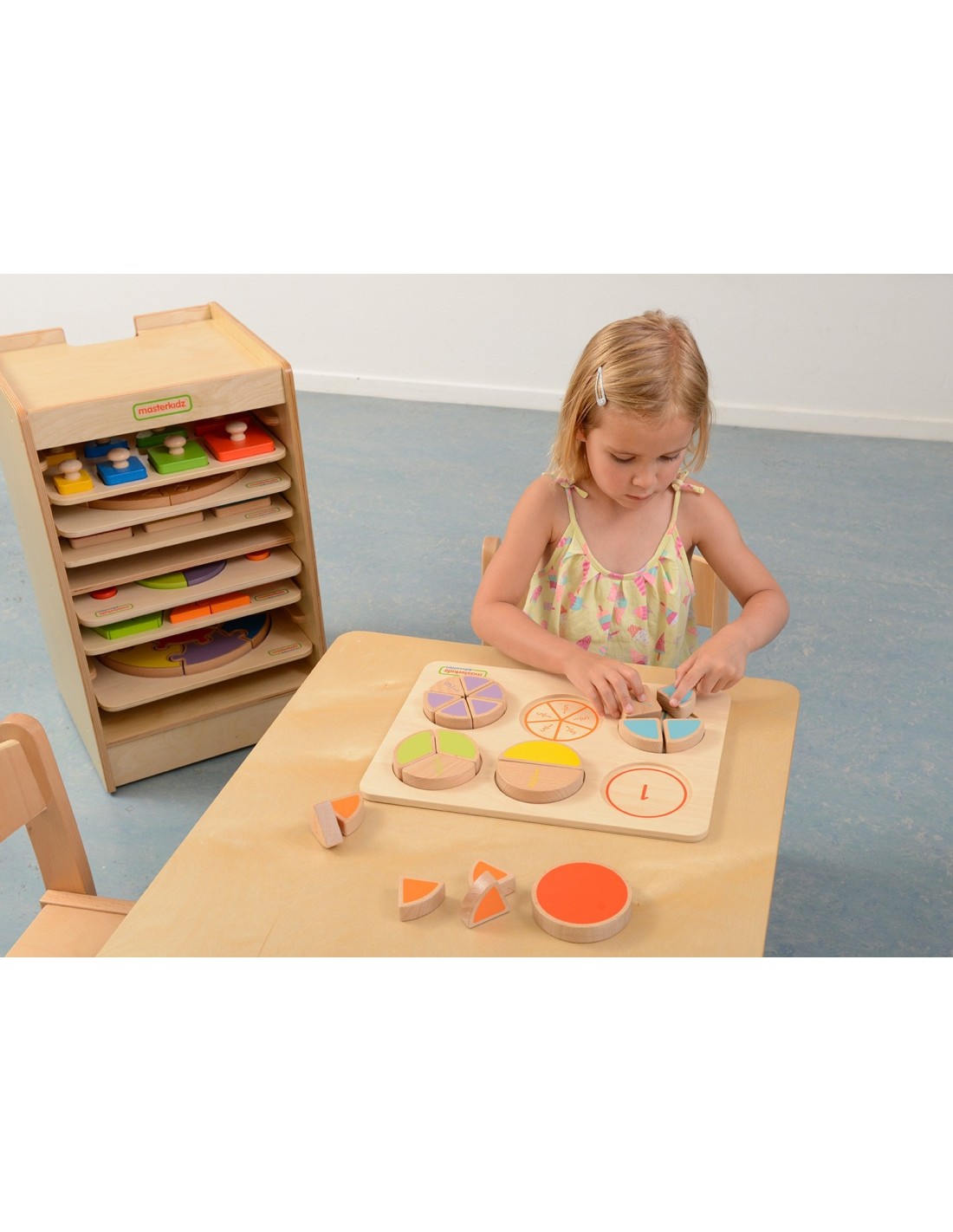 Ta wspaniała drewniana układanka marki MASTERKIDZ sprawia, że nauka podstawowych pojęć matematycznych staje się prostą i przyjemną przygodą. Kolorowe, skrojone z europejskiego drewna elementy pozwalają dziecku zobaczyć na własne oczy, jak działa podział całości na części. Każdy element pasuje do swojego miejsca według koloru, a na odwrocie znajdziemy zapisane ułamki – to podwójna dawka edukacyjnej zabawy. Idealna dla maluchów stawiających pierwsze kroki w świecie matematyki, jak i dla starszaków, którzy utrwalają wiedzę zdobytą w szkole.