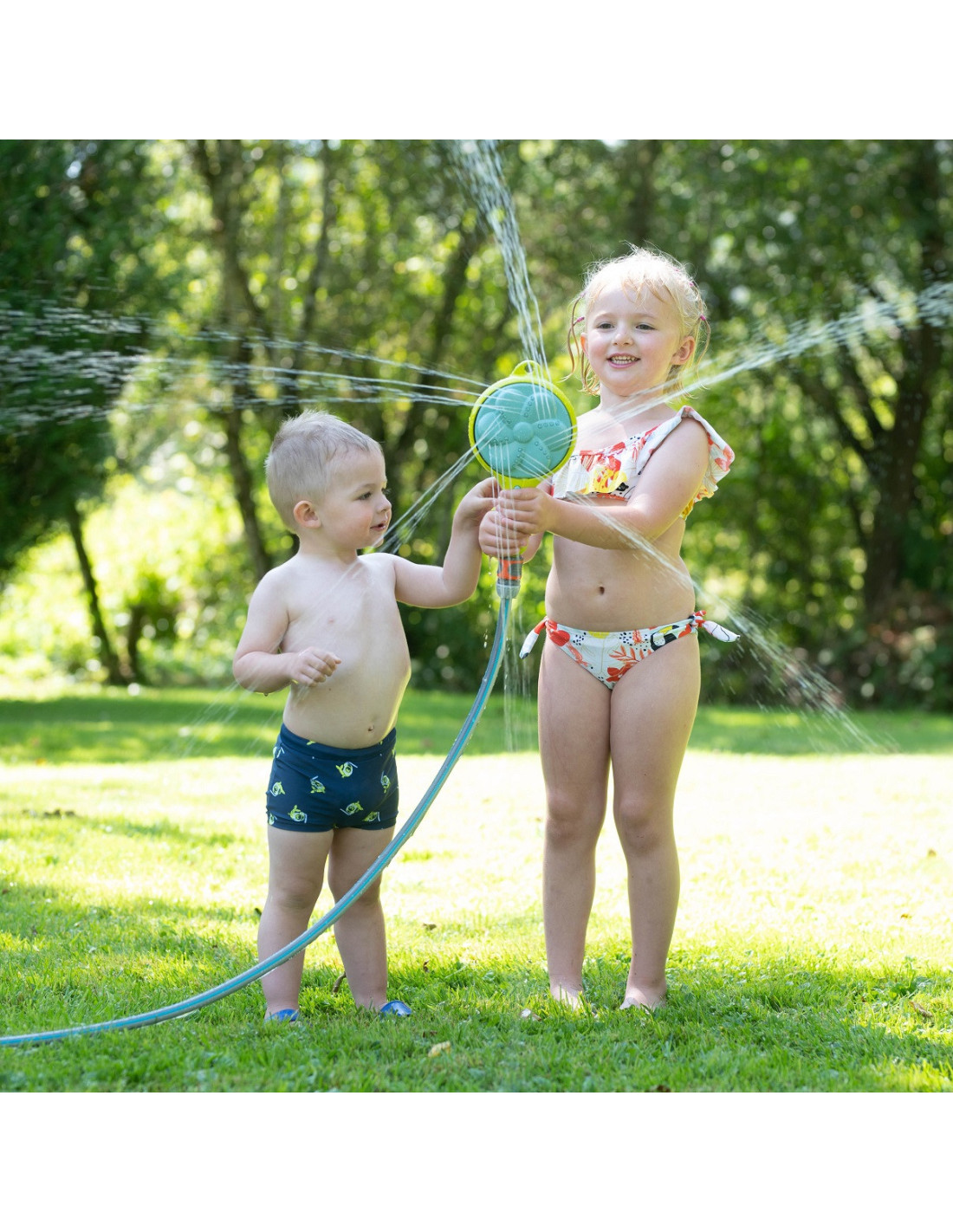 - - po podłączeniu węża ogrodowego można umieścić na podłodze/ziemi, bawić się trzymając go w ręku lub montując do domku ogrodowego,