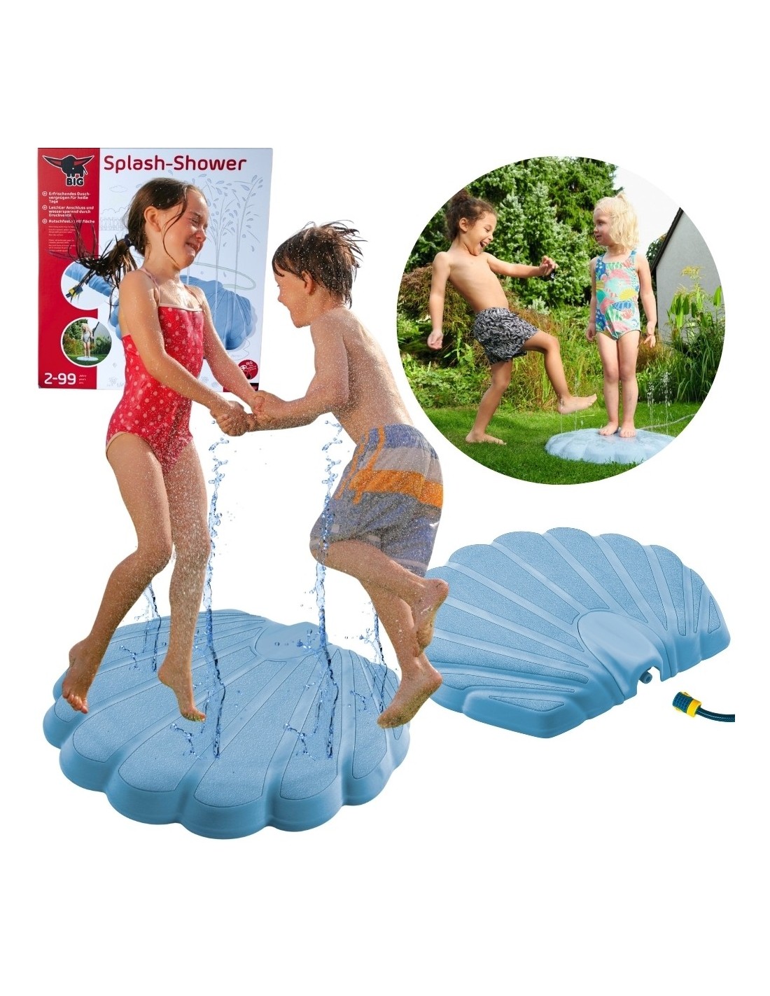 Zraszacz wodny Muszelka, niemieckiej firmy BIG to orzeźwiająca wodna zabawa dla dzieci w wieku od 2 lat. BIG Splash Shower może być przenoszony przez dziecko dzięki swojej niewielkiej wadze. Wbudowany zawór ciśnieniowy można pomoże zaoszczędzić wodę podczas użytkowania. Dopiero po wejściu na antypoślizgowy bieżnik woda rozpryskuje się w górę, ciśnienie słabnie, a przepływ wody zatrzymuje się automatycznie po zejściu z muszelki. Produkt jest wykonany z wytrzymałego i przyjaznego dla środowiska tworzywa sztucznego. Dzięki standardowemu przyłączu węża prysznic rozpryskowy jest szybki i łatwy w montażu.