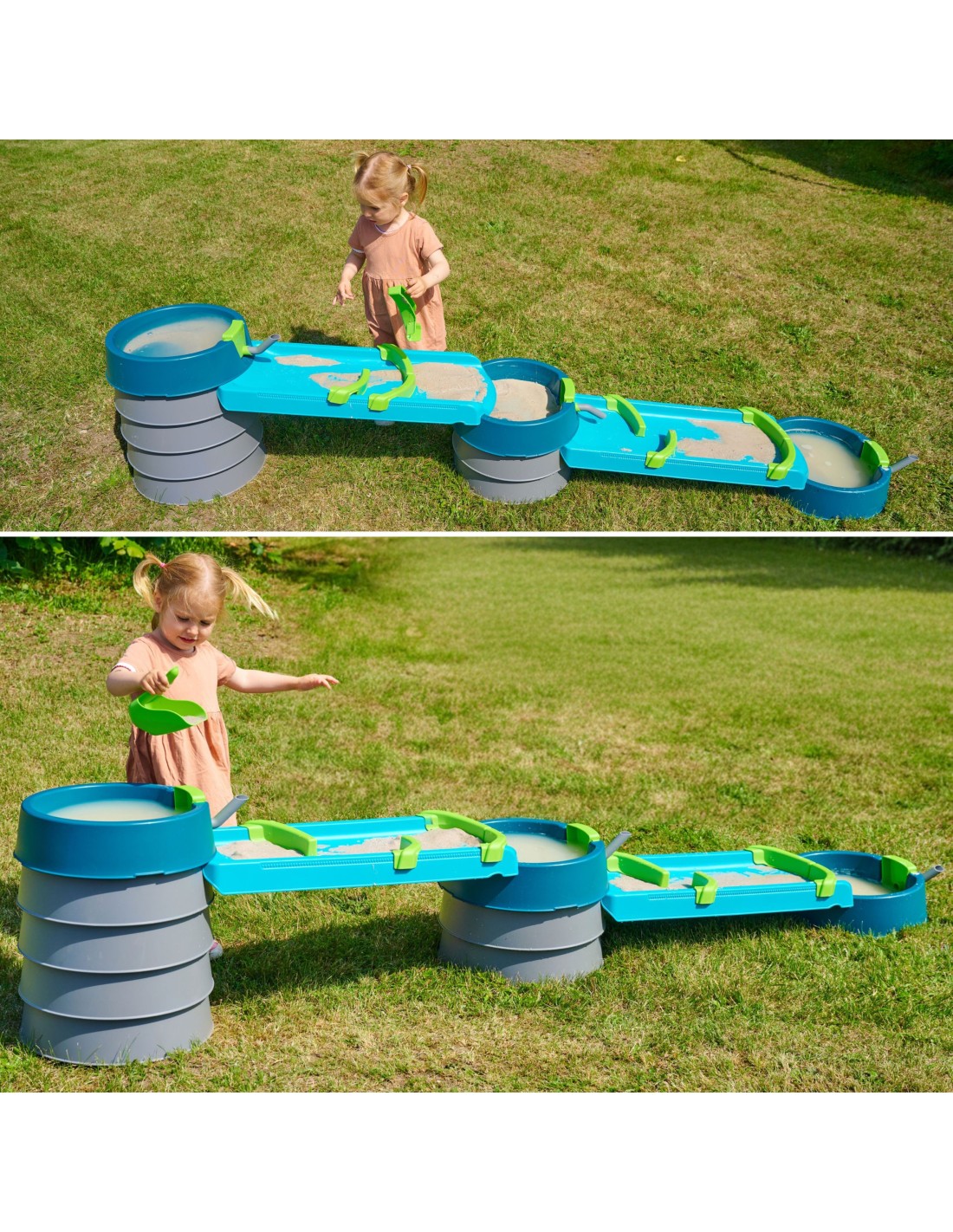 AquaPlay Mudway Flow, to idealny zestaw do zabawy na zewnątrz, który zamienia ogród w mini-laboratorium wodne. Dzieci same decydują o kierunku i sile przepływu wody, ucząc się przez eksperymentowanie i obserwację. Ruchome elementy, obrotowe tacki 360° i modułowa konstrukcja sprawiają, że każda zabawa wygląda inaczej. Zestaw rozwija kreatywność, logiczne myślenie i podstawy fizyki, poprzez zabawę. To połączenie aktywnej zabawy, nauki i świeżego powietrza, które naprawdę wciąga dzieci i dorosłych.