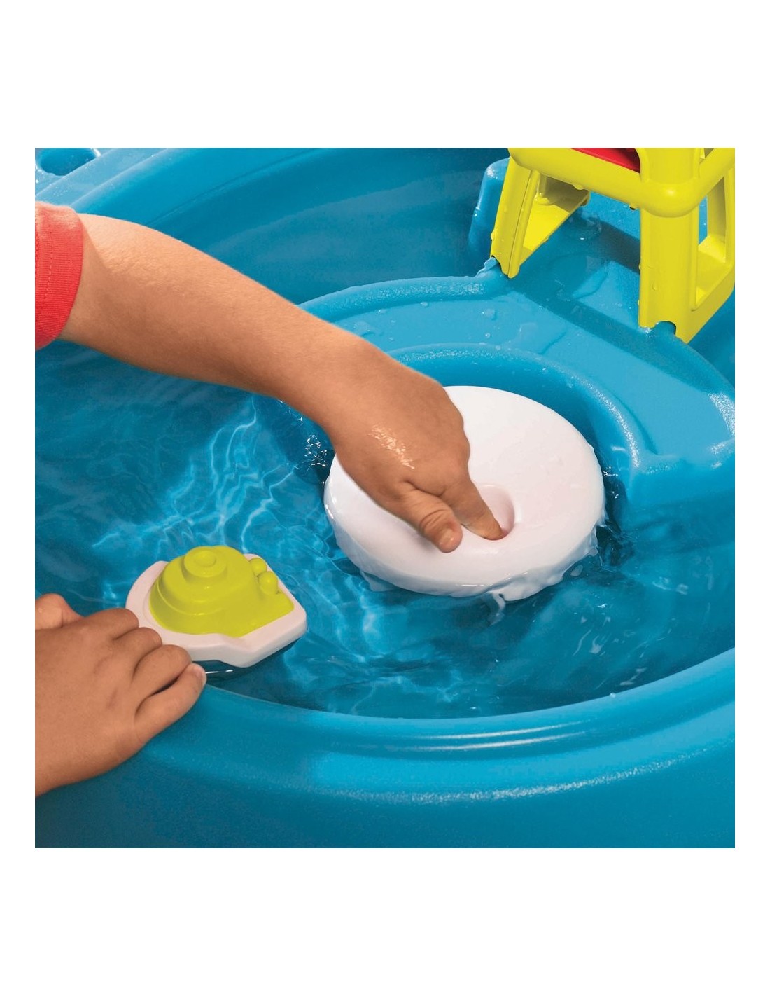 Wielofunkcyjny stół od renomowanej firmy Little Tikes posiada dwie duże powierzchnie do zabawy piaskiem i wodą. Część stołu w kształcie kraba to piaskownica, natomiast niebieska rybka wypełniona wodą, pozwala sterować ruchem stateczków i łódek, a ręczna korba wytworzyć prądy wodne. W zestawie występuje mostek, statek, łódka, "młyn" oraz łopatka i sitko. Dodatkowo wyposażono to małe centrum zabaw w parasol, który osłoni maluchy przed ostrym słońcem. Po skończonej zabawie obie części stołu można zabezpieczyć specjalnymi pokrywami.