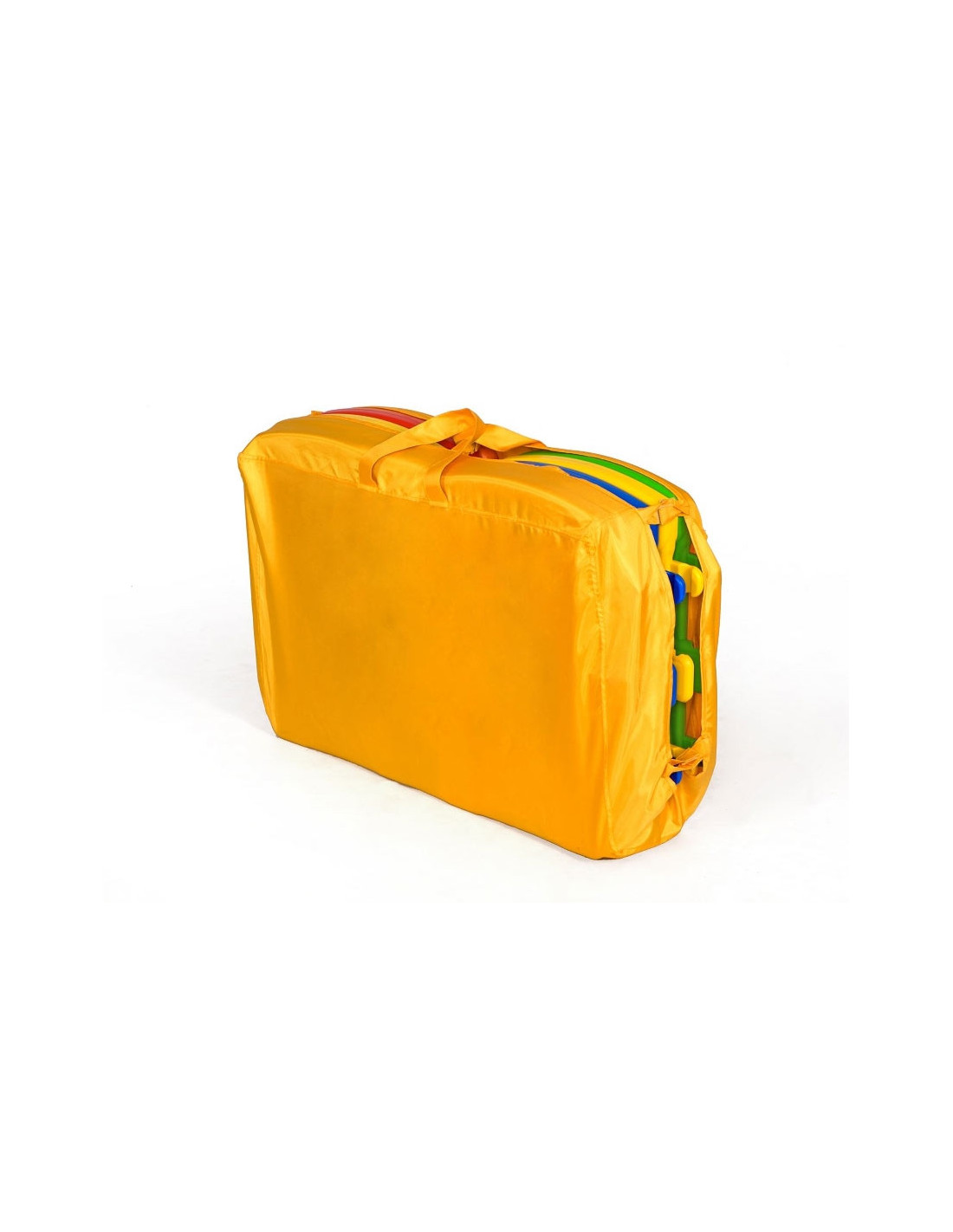 - Płotek można zdemontować i złożyć w torbę, która jest jednocześnie podłogą kojca w celu przewiezienia lub przechowania.
