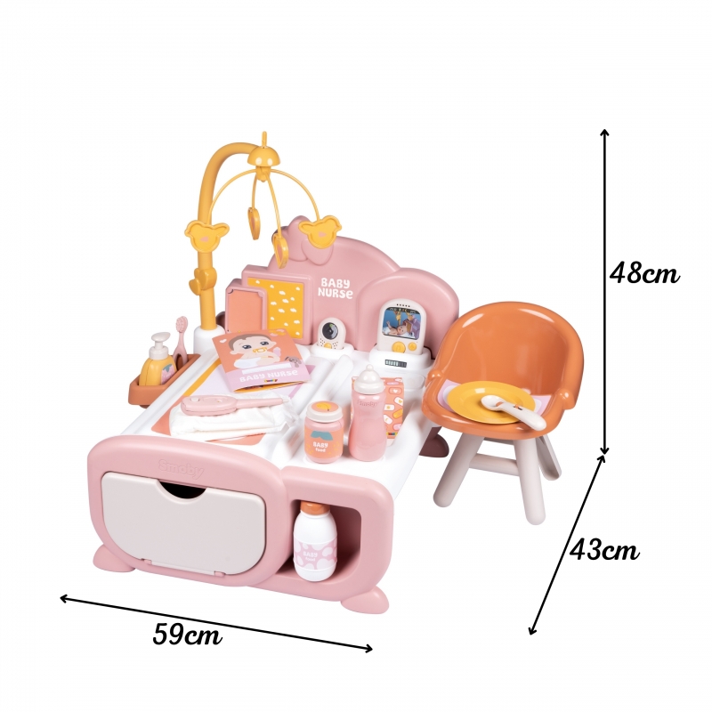 Każda mała mama marzy o własnym kąciku, w którym może opiekować się ukochaną laleczką jak prawdziwy rodzic. Centrum zabaw Baby Nurse od renomowanej marki Smoby to wielofunkcyjny zestaw, który łączy zabawę z nauką empatii i odpowiedzialności. Dzięki przewijakowi z karuzelą, elektronicznej niani z kołysankami i fotelikowi do karmienia, dziecko może odgrywać wszystkie codzienne sytuacje z życia maluszka. Wbudowane półki i szuflada pomagają utrzymać porządek i zawsze mieć akcesoria pod ręką. To kompletny zestaw, który zachwyci dziewczynki i stanie się prawdziwym centrum ich domowej zabawy!