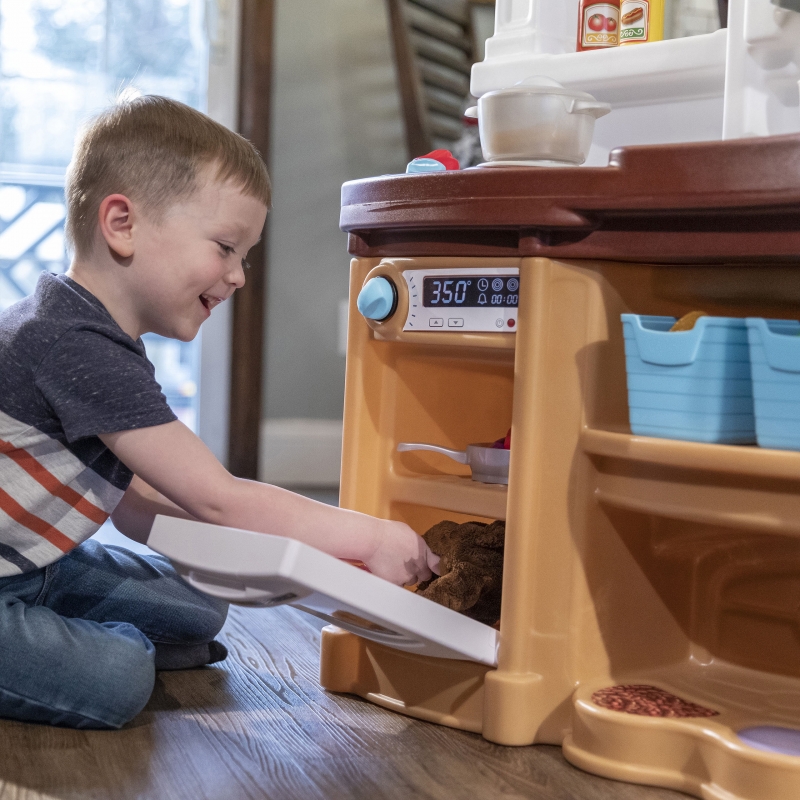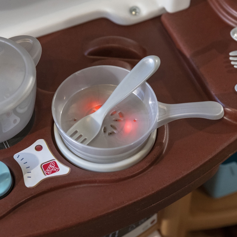 Rewelacyjny kącik kuchenny "Zabawa z Przyjaciółmi" od amerykańskiej marki Step2 to idealne miejsce do zabawy dla dzieci. Wyposażona w kuchnię z efektami dźwiękowymi i świetlnymi oraz wiele akcesoriów zapewni dzieciom godziny zabawy. Dzięki dużym rozmiarom z kuchni może korzystać więcej niż tylko jedno dziecko. taka kuchnia zachwyci każdego małego kucharza i zachęci do kreatywnej zabawy.