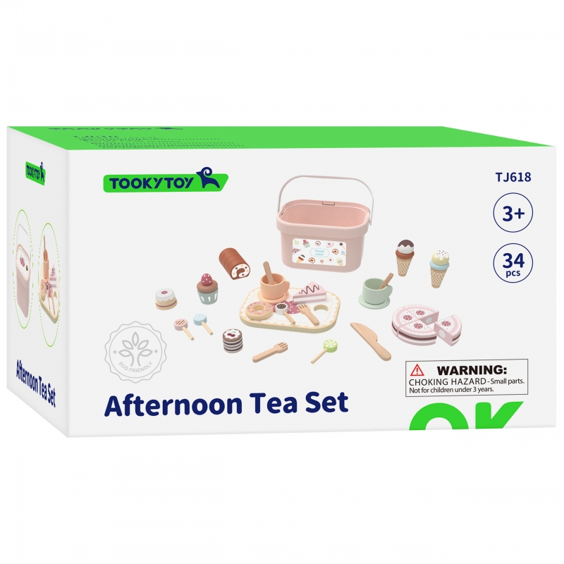 Witaj w słodkim świecie zabawy! Ten uroczy zestaw drewnianych deserów zamieni każdy dzień w prawdziwe przyjęcie herbaciane. Dzieci będą mogły kroić urocze drewniane torty, nakładać babeczki, ciasteczka i lody na drewnianą podstawkę, a także przenosić całą ucztę w estetycznym pudełku ze słodką grafiką. Drewniane akcesoria podzielone na części łączące się na rzepy sprawiają, że zabawy może być bez końca - a każda wizyta w słodkiej kawiarni to nowa przygoda rozwijająca wyobraźnię.
