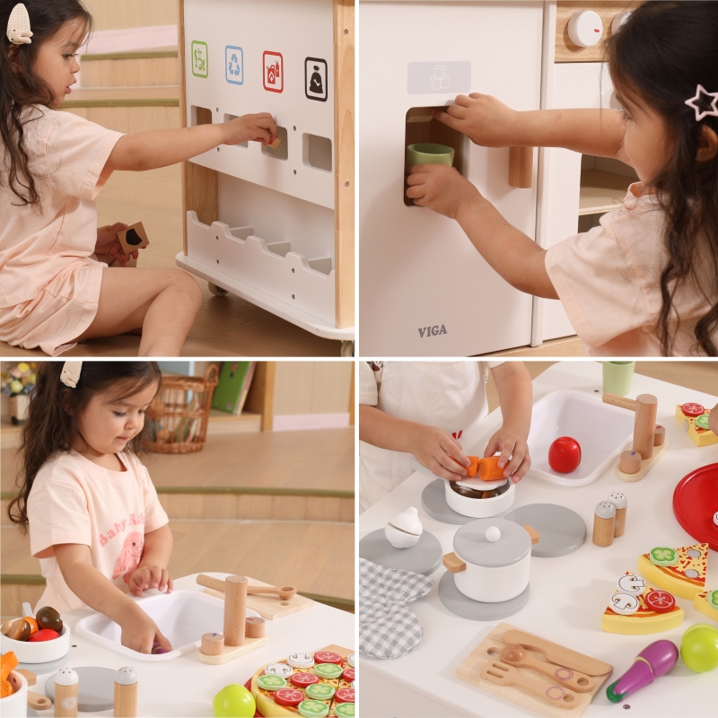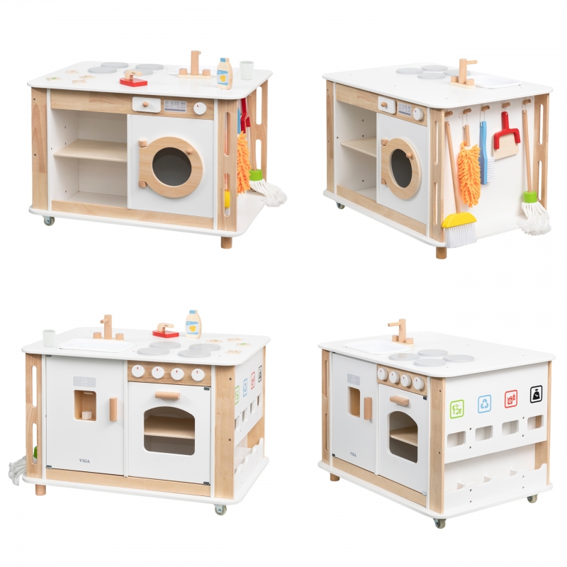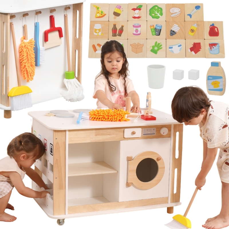 Maluchy mogą gotować, prać, sprzątać i uczyć się recyklingu, odgrywając realistyczne scenki domowe. Interaktywne elementy, jak kostkarka do lodu czy kosiarka z efektem dźwiękowym, sprawiają, że zabawa staje się jeszcze bardziej emocjonująca. Styl wyspowy i liczne akcesoria zachęcają do wspólnej zabawy i rozwijają umiejętności społeczne. To idealny prezent dla dzieci od 3. roku życia, który łączy naukę życia codziennego z kreatywnym spędzaniem czasu!
