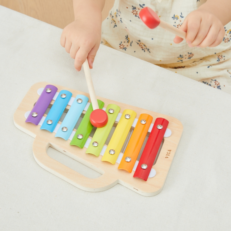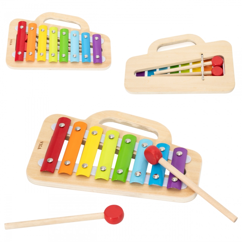 Ten kolorowy, drewniany ksylofon to idealna pierwsza zabawka muzyczna dla dzieci od 18 miesiąca życia. Wydaje 8 czystych tonów, które wprowadzają malucha w świat muzyki i rytmu. Tęczowe kolory przyciągają uwagę i inspirują do zabawy, rozwijając kreatywność i koncentrację. Wbudowany schowek na młoteczki oraz boczny uchwyt sprawiają, że ksylofon jest łatwy do przechowywania i przenoszenia. To doskonały prezent, który łączy zabawę, naukę muzyki i rozwój motoryki małych rączek!