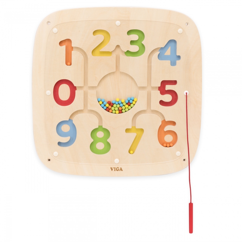 Poznaj wesoły świat cyfr i kolorów z tą interaktywną tablicą drewnianą od VIGA! Ta edukacyjna zabawka została stworzona, aby w praktyczny i przyjemny sposób uczyć dzieci liczenia, rozpoznawania kolorów i precyzyjnych ruchów. Z pomocą magnetycznego rysika, Twoje dziecko będzie przesuwać kolorowe koraliki, dopasowując je do odpowiednich cyfr i torów. To doskonały sposób na rozwijanie umiejętności matematycznych i manualnych w jednym! Tablica jest trwała, bezpieczna i łatwa w montażu na ścianie, co pozwala zaoszczędzić miejsce na podłodze.