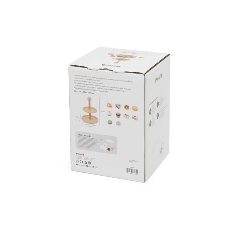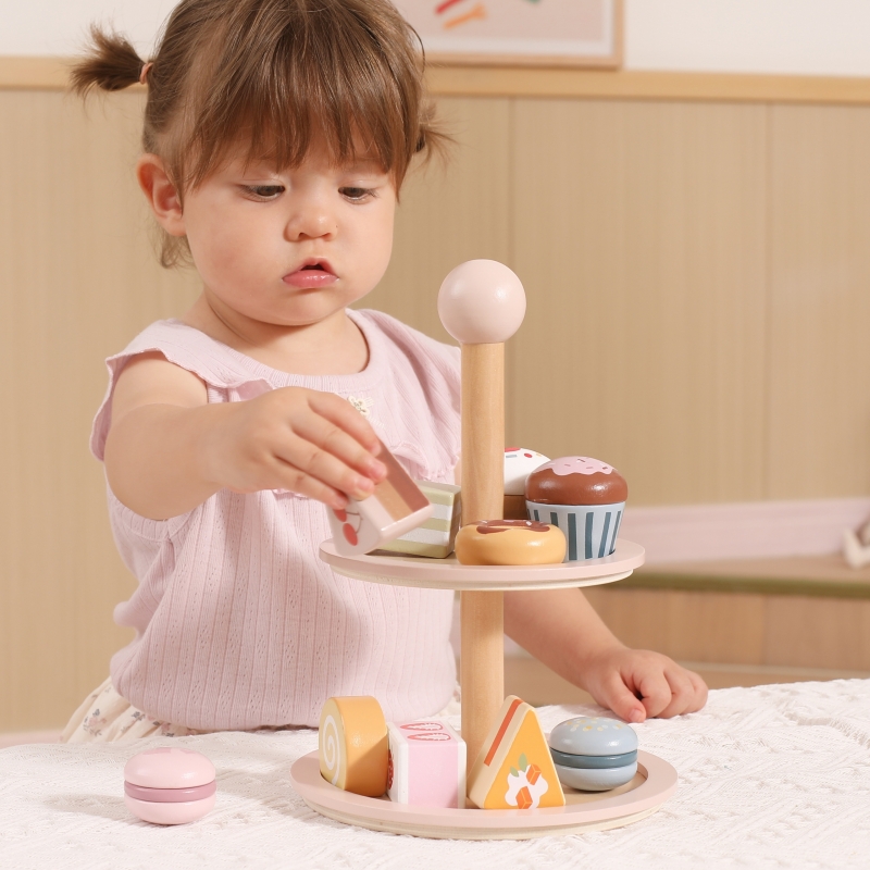 Zaproś swoje dziecko do świata zabawy w kawiarenkę! Drewniany stojak na ciasto marki Viga PolarB to elegancka, dwupoziomowa patera z kolorowymi słodkościami, która umili każdą popołudniową herbatkę. Zestaw zawiera aż 10 uroczych ciasteczek i torcików, wykonanych z bezpiecznych, nietoksycznych materiałów. Gładkie krawędzie i idealny rozmiar sprawiają, że zabawka jest wygodna do chwytania przez małe rączki. To nie tylko świetna zabawa, ale także sposób na rozwój wyobraźni, kreatywności i umiejętności społecznych dziecka.