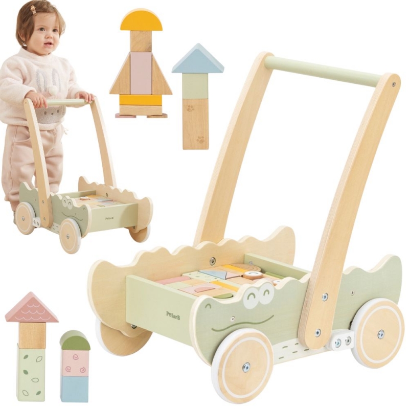 Odkryj radość pierwszych kroków z naszym uroczym chodzikiem-pchaczem w kształcie krokodyla! Ta wielofunkcyjna zabawka to idealny towarzysz rozwoju Twojego malucha. Stabilna konstrukcja i wygodny uchwyt zapewniają bezpieczne wsparcie podczas nauki chodzenia, a zestaw kolorowych klocków znajdujących się wewnątrz chodzika zachęca do kreatywnej zabawy i rozwijania motoryki.
