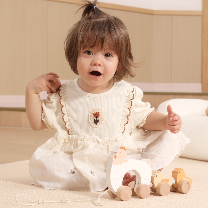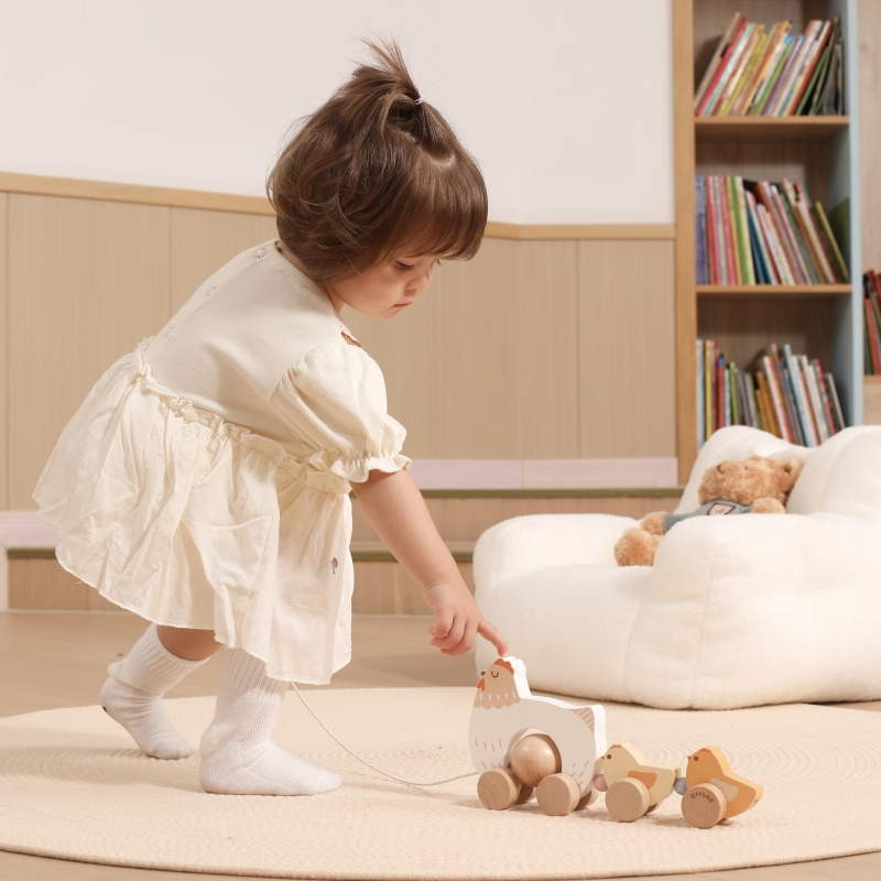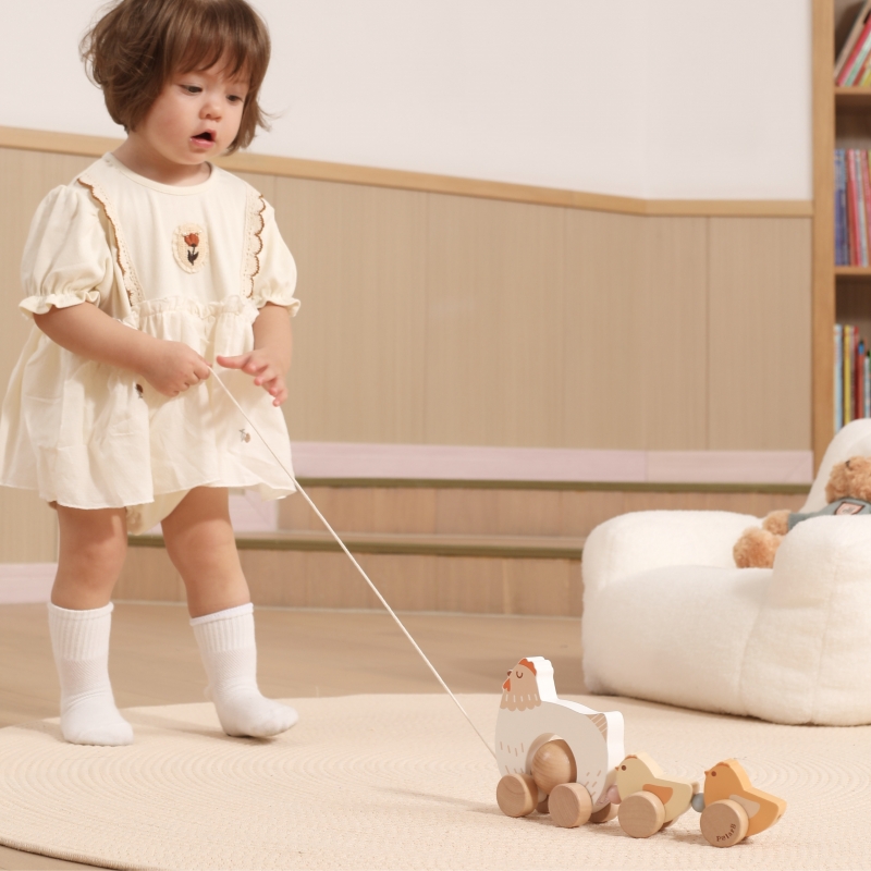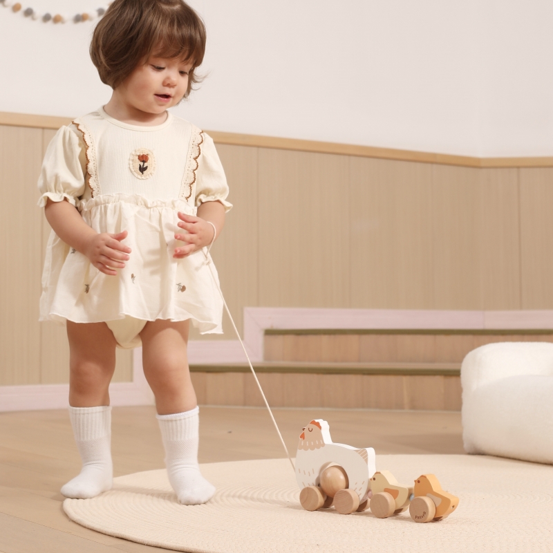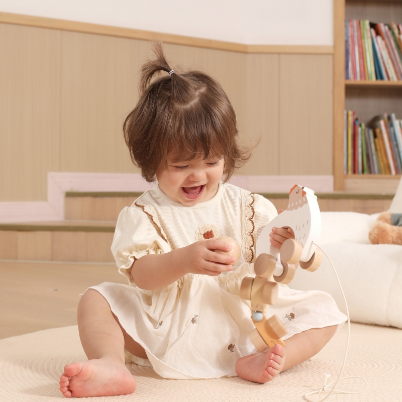 Zabawkowa drewniana kurka z kurczakami do ciągnięcia to cudowny towarzysz pierwszych kroków dla Twojego dziecka od marki Viga Toys. Pisklęta kołyszą się radośnie przy każdym pociągnięciu, a odłączalne jajko daje możliwość samodzielnej zabawy. Solidna konstrukcja z drewna zapewnia trwałość i bezpieczeństwo przez długi czas. Zabawka łączy ruch, odkrywanie i naukę w jednym – stymuluje motorykę i koordynację. Idealny pomysł na prezent, który po prostu cieszy oko i sprawia radość maluchowi.
