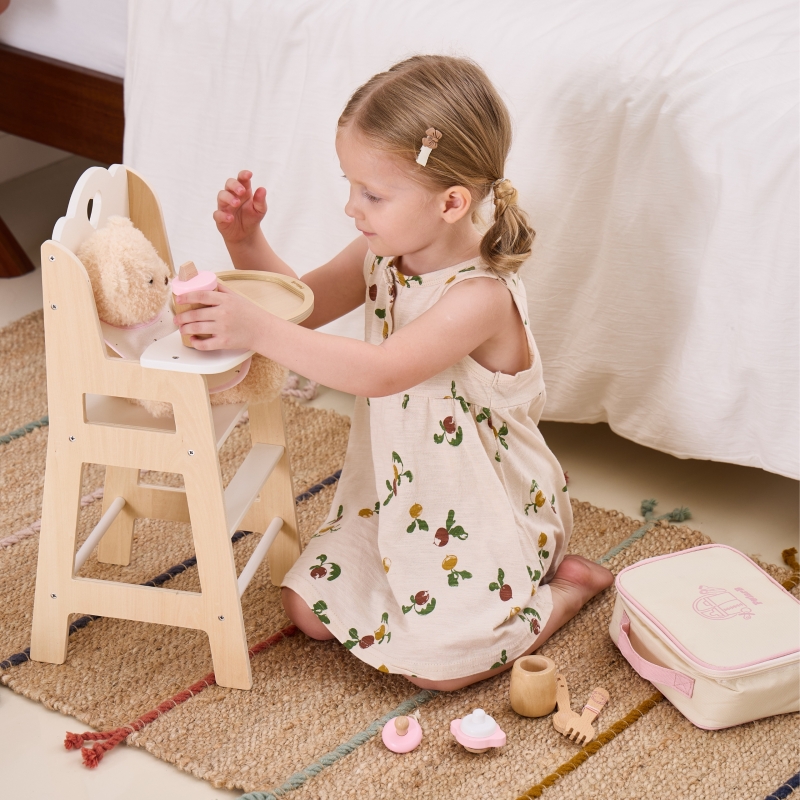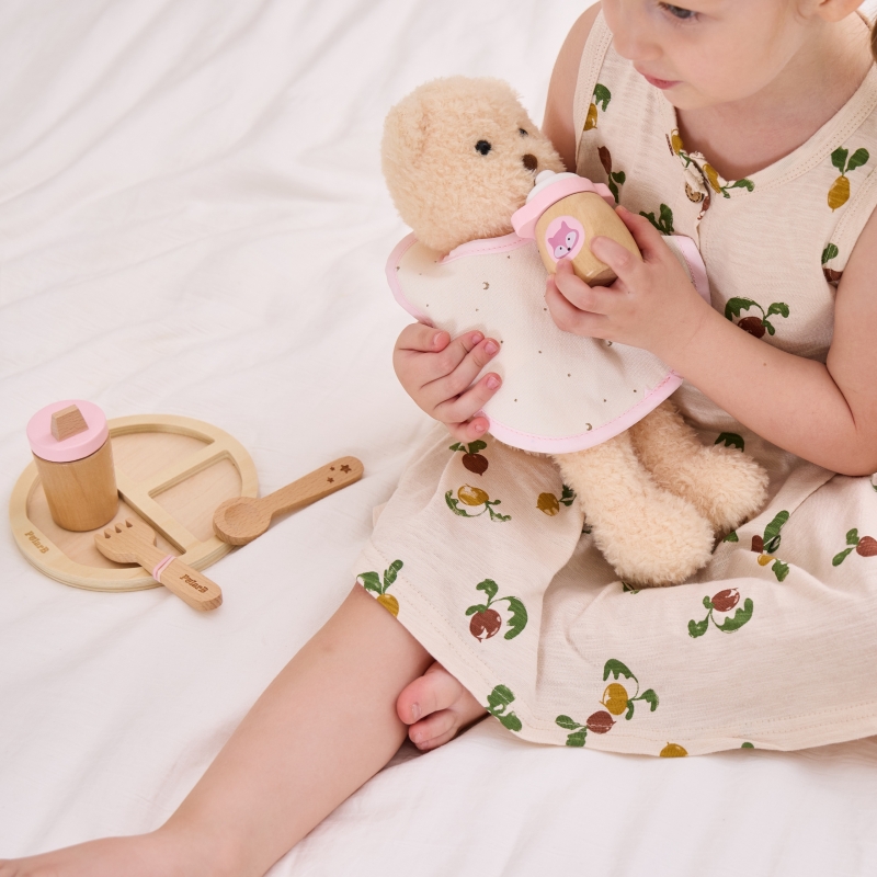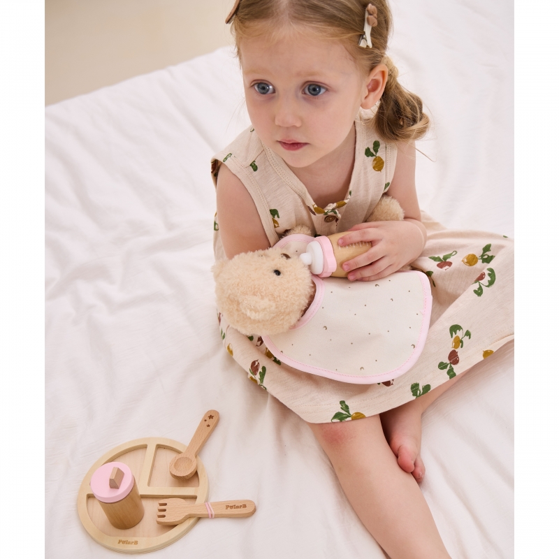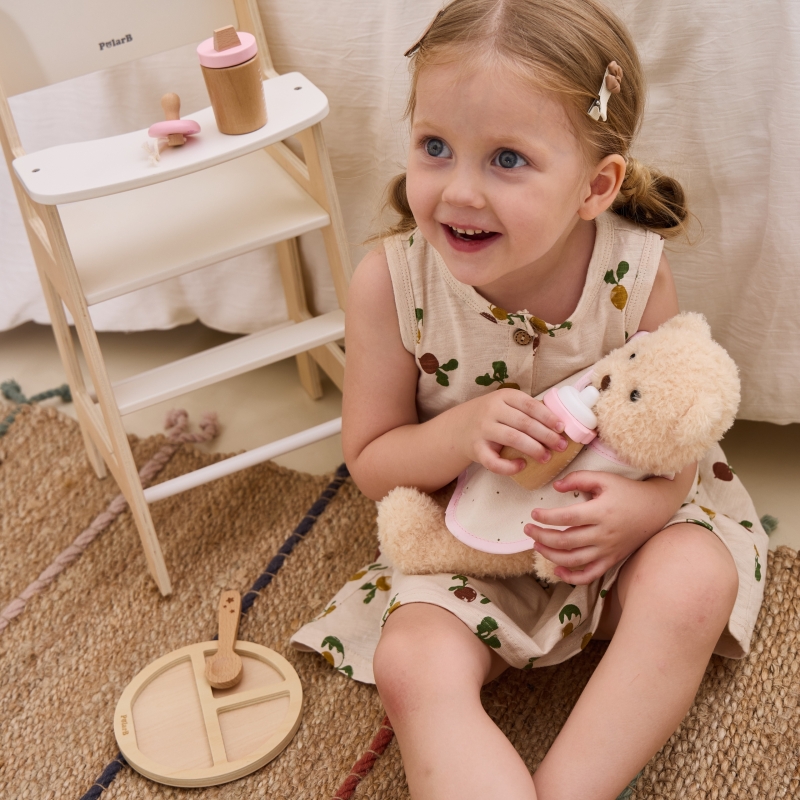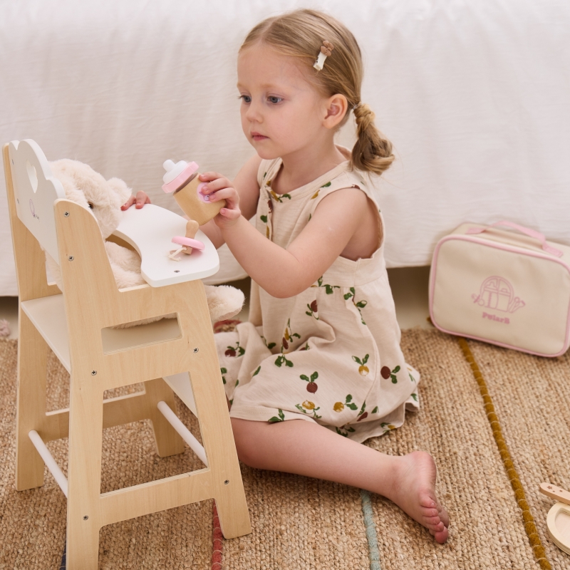 Uroczy drewniany zestaw do karmienia lalek od marki Viga z serii PolarB to idealny sposób na rozwijanie u dzieci poczucia miłości i troski poprzez zabawę w odgrywanie ról. To nie tylko zabawka, ale również narzędzie wspierające rozwój emocjonalny i społeczny malucha. Zestaw składa się z pięknie wykonanych akcesoriów, które zostały starannie zaprojektowane z myślą o najmłodszych. Wszystkie elementy są wygodnie zapakowane w zasuwaną torbę, co ułatwia przechowywanie i transportowanie zestawu. Torba zawiera wszystko, czego potrzeba, aby zadbać o ukochaną laleczkę – od śliniaczka po butelkę. Dzięki temu zestawowi maluchy mogą opiekować się lalkami, ucząc się jednocześnie odpowiedzialności, empatii i dbałości o innych. To doskonały sposób na rozwijanie wyobraźni i kreatywności poprzez tworzenie różnorodnych scenariuszy zabaw.