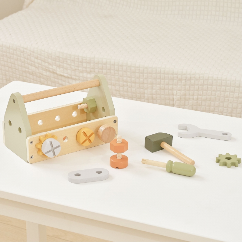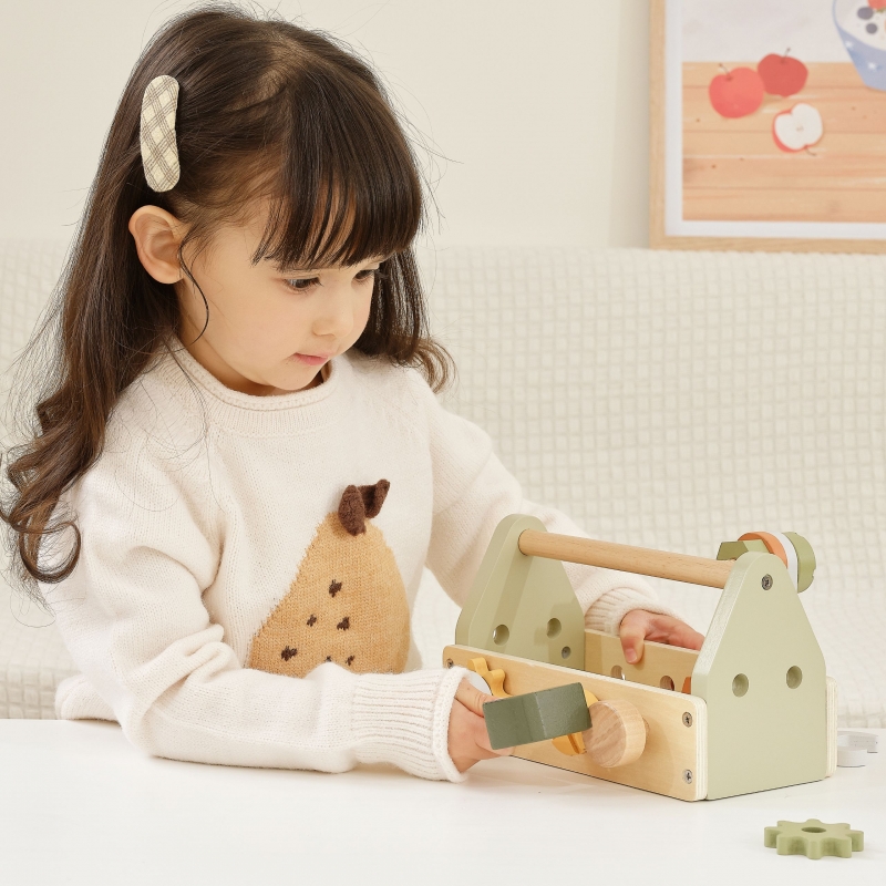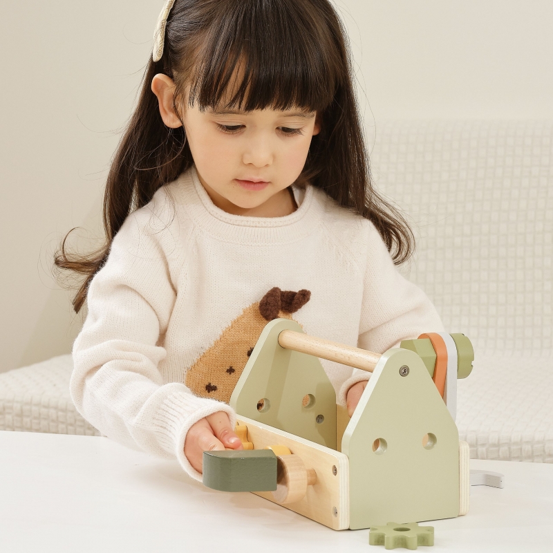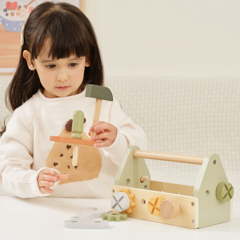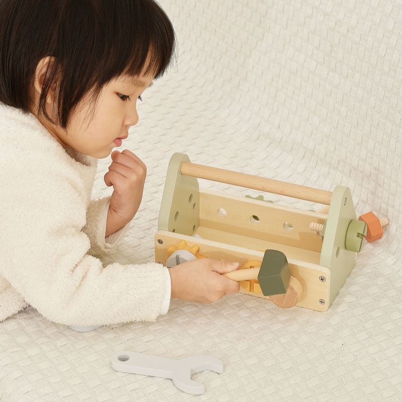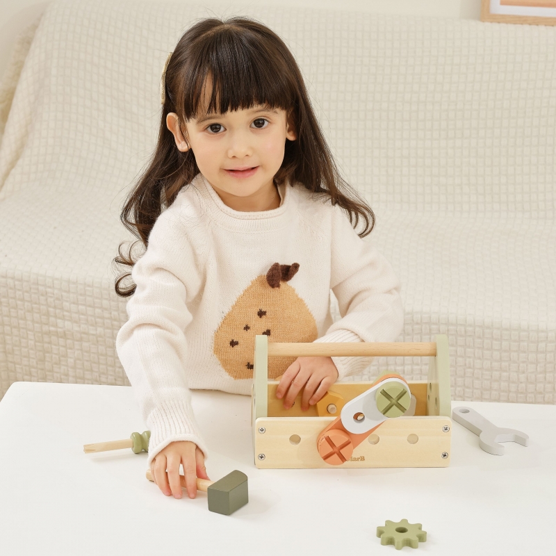 Drewniana Skrzynka z Narzędziami marki Viga z kolekcji PolarB zapewni wspaniałą zabawę każdemu małemu majsterkowiczowi. Zestaw zawiera młotek, klucz, śrubokręt, 4 pary śrub i nakrętek, kołek, 2 koła zębate i 2 panele z otworami. Dzieci mogą poznawać różne narzędzia i rozwijać umiejętności obracania, uderzania i dopasowywania. Zabawa w majsterkowanie wspomoże rozwój zdolności manualnych, zaciekawi i pobudzi wyobraźnię dziecka.