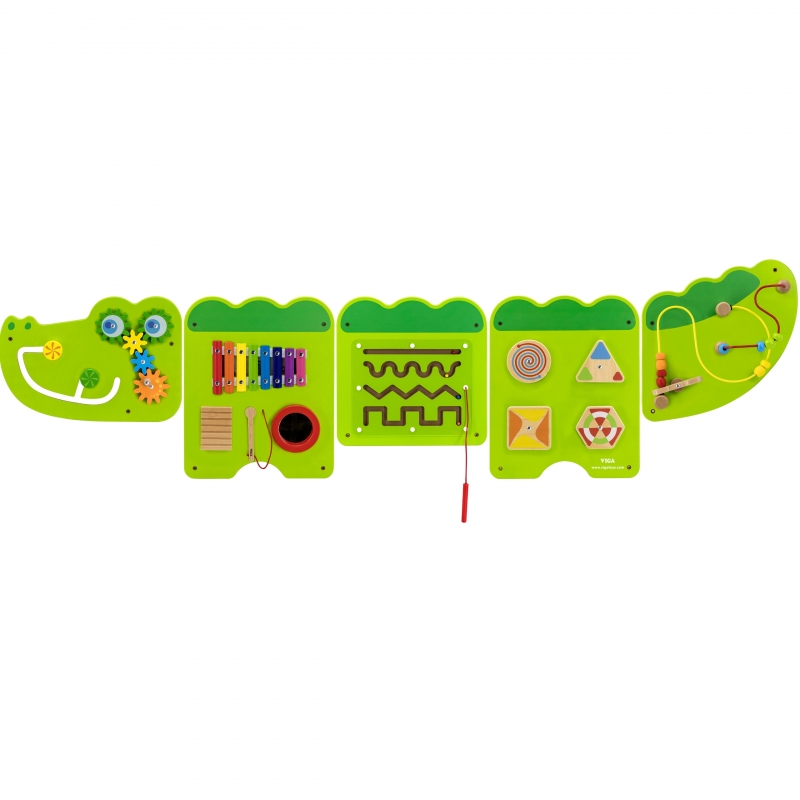 Edukacyjny Panel Ścienny Krokodyl VIGA to zabawka 5 w 1, która łączy naukę, kreatywność i radosną zabawę. Każdy panel oferuje inną aktywność — muzykę, labirynty, sortery i zębatki — które pobudzają zmysły i wyobraźnię. Panel jest idealny do przedszkola, żłobka lub pokoju dziecięcego i oszczędza miejsce dzięki montażowi na ścianie. Wykonany z trwałego drewna i pomalowany nietoksycznymi farbami, gwarantuje bezpieczeństwo i długą żywotność. Ten kolorowy krokodyl stanie się ulubionym towarzyszem codziennej zabawy i nauki.