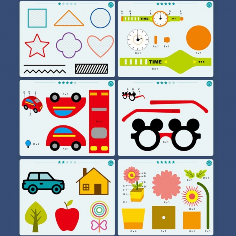 Szybki podglądCztery pary klocków o różnym kolorze, kształcie i fakturze powierzchni. Klocki można parami układać jeden w drugim na drewnianej planszy. Zabawka łączy funkcje sortera kształtów, sortera kolorów, oraz zabawki sensorycznej, rozwijającej zmysł dotyku.
