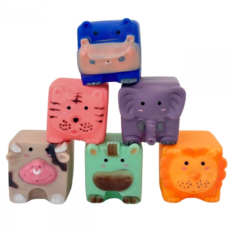 WOOPIE Klocki Sensoryczne Układanka do ściskania zaciekawią każdego malucha. Dzięki ciekawym kształtom, kolorom i możliwości wydawania dźwięków przez ściśnięcie doskonale stymulują rozwój koordynacji wzrokowo-słuchowej, motorycznej dziecka oraz zmysłu dotyku. Klocki posiadają wypukłe kształty z wizerunkiem zwierząt. Klocki są miękkie i przyjemne w dotyku oraz wydają dźwięki podczas ściskania. Dzięki swojej budowie sprawdzą się również doskonale jako gryzak. Dzięki wizerunkom zwierząt dziecko może zapoznać się ze światem przyrody. Produkt w pięknej stonowanej kolorystyce przeznaczony dla dzieci od 12 miesiąca życia.