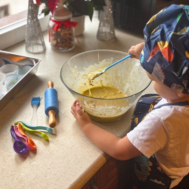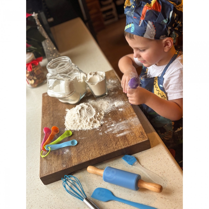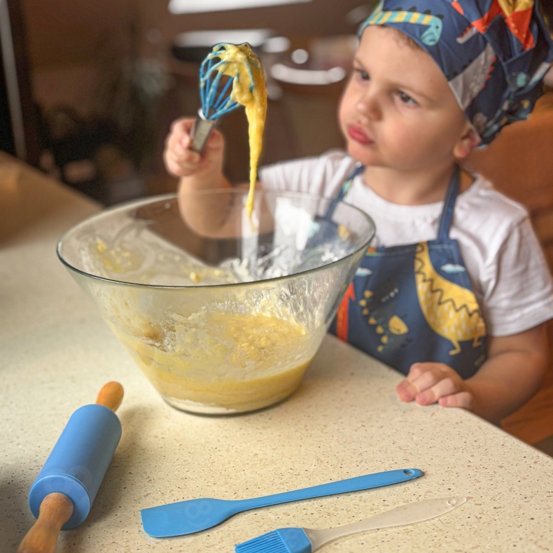 Przenieś zabawę do kuchni! Dino Zestaw Małego Kucharza marki WOOPIE to kolorowy zestaw akcesoriów kuchennych dla dzieci, który łączy naukę z kulinarną frajdą. Uroczy fartuszek i czapka z motywem dinozaurów, bezpieczne narzędzia oraz silikonowe foremki zachęcają do wspólnego gotowania. Regulowane paski, miękki materiał i lekkie przybory sprawiają, że zestaw jest wygodny i dopasowany do małych rączek.