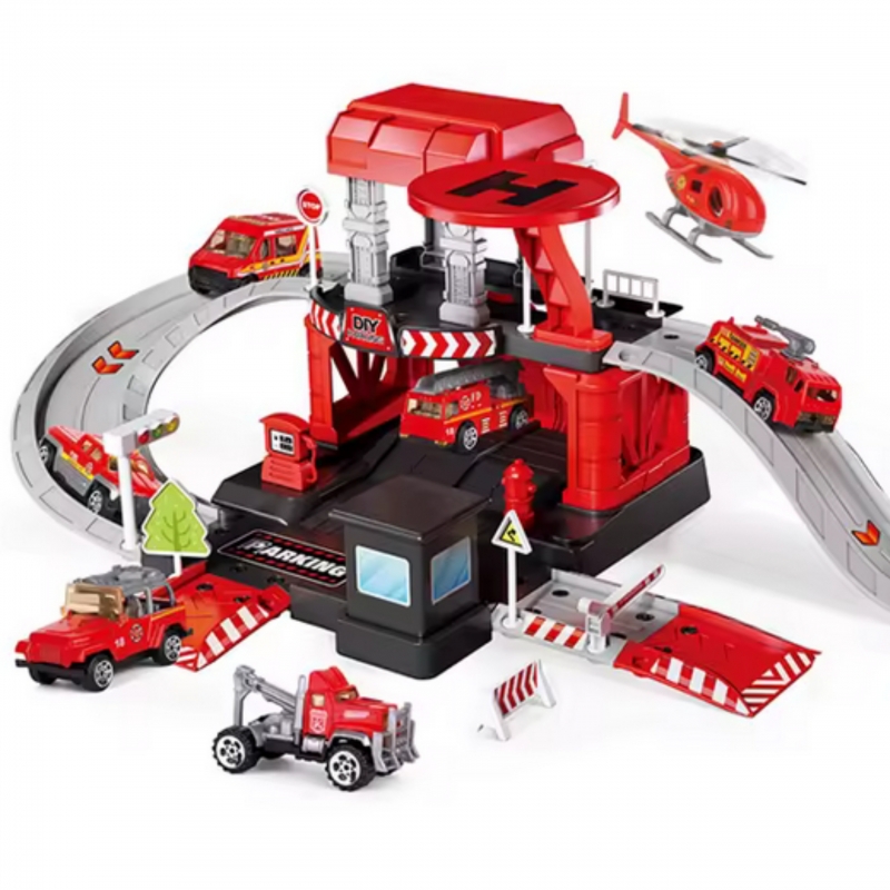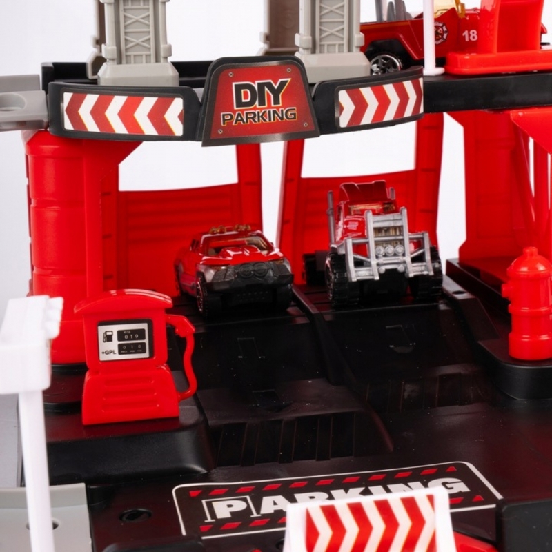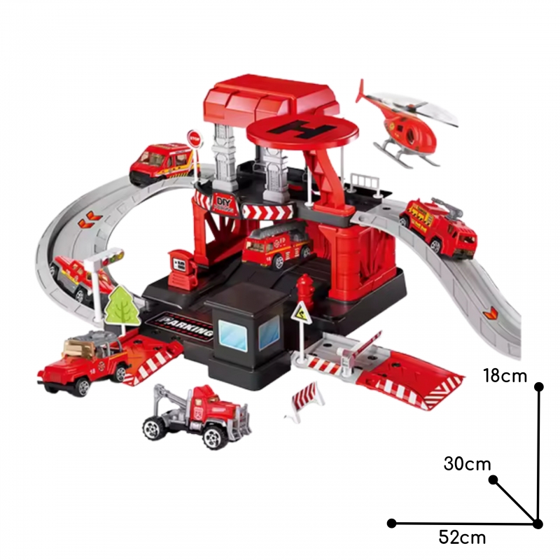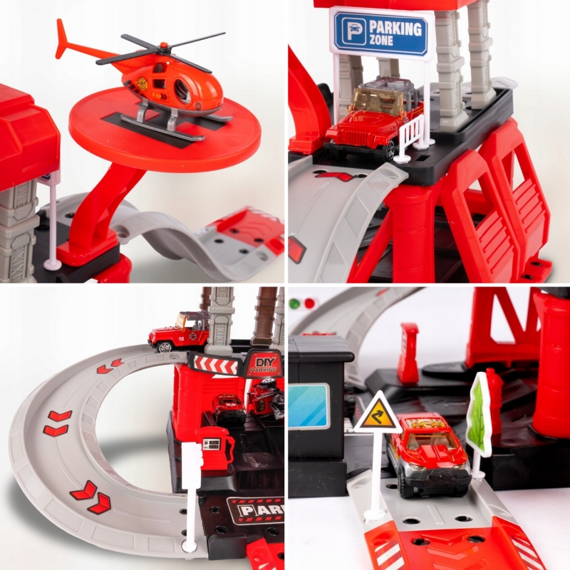 Parking straży pożarnej od marki Woopie z akcesoriami i pojazdami to fantastyczny zestaw tematyczny dla każdego małego miłośnika motoryzacji i służb mundurowych! Zabawka zachwyca bogactwem detali, ilością elementów, żywą kolorystyką i wieloma możliwościami zabawy. Dwupoziomowy parking z rampami, lądowiskiem dla helikoptera i licznymi akcesoriami pozwala dziecku na tworzenie własnych scenariuszy zabawy, ograniczonymi tylko wyobraźnią. Trzy metalowe samochodziki i helikopter pozwolą wykorzystać każdą z funkcji garażu i pozwolą na zabawę w gronie rodzeństwa lub przyjaciół oraz wcielenie się w postać małego strażaka.