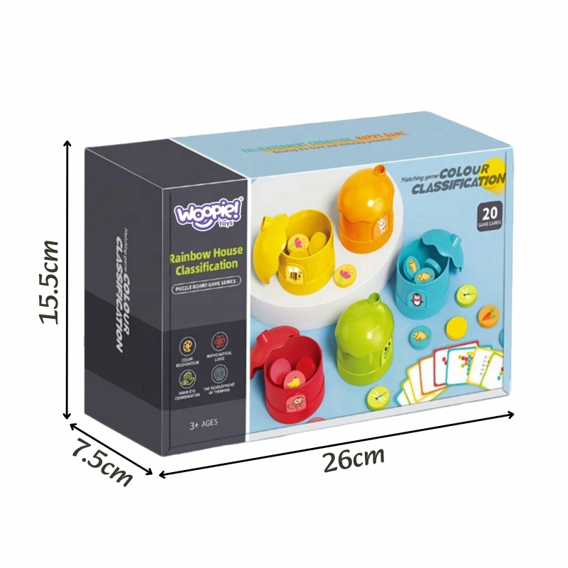 Wprowadź swoje dziecko w świat logicznego myślenia i rozpoznawania kolorów z zestawem WOOPIE Gra Logiczna Klasyfikacja Kolorów! Ta edukacyjna gra typu matching game (gra w dopasowywanie) jest idealna dla dzieci od 3 roku życia. Zestaw zawiera pięć kolorowych pojemników-domków i żetony z uroczymi naklejkami zwierząt i przedmiotów, a także aż 20 kart z zadaniami. Głównym celem jest dopasowanie żetonów do odpowiednich kolorystycznie domków, co rozwija rozpoznawanie barw, logiczne myślenie i koordynację ręka-oko. Domki należą do uroczych postaci, takich jak pingwin, pszczoła czy małpka, co dodatkowo zachęca do zabawy. To doskonały sposób na łączenie przyjemnego z pożytecznym, przygotowując malucha do nauki matematyki i rozwijając jego zdolności koncentracji.