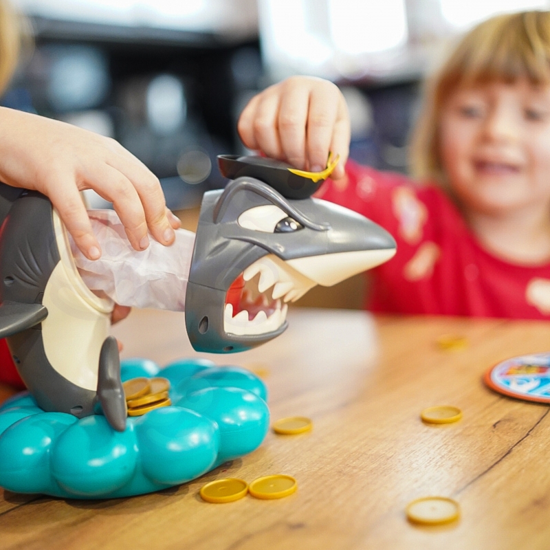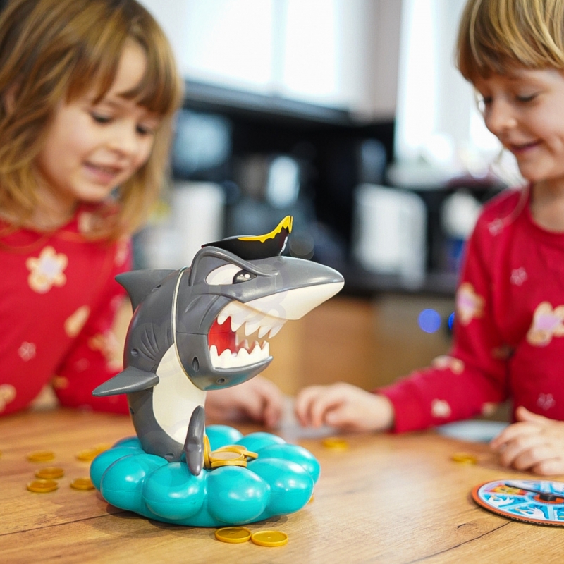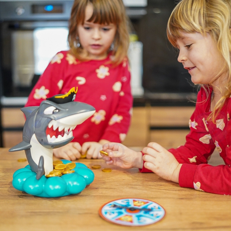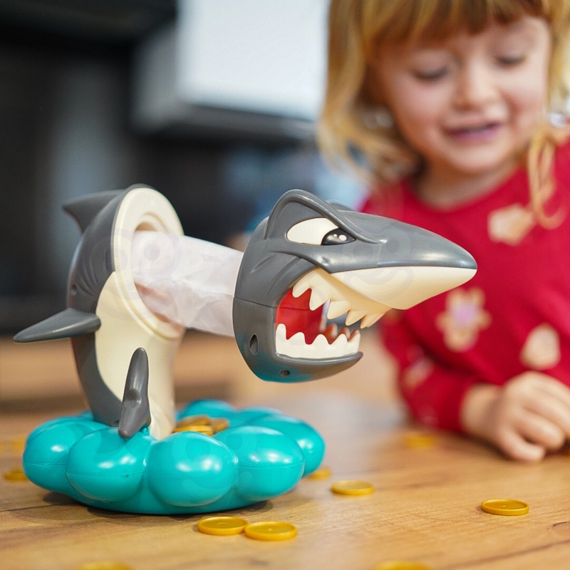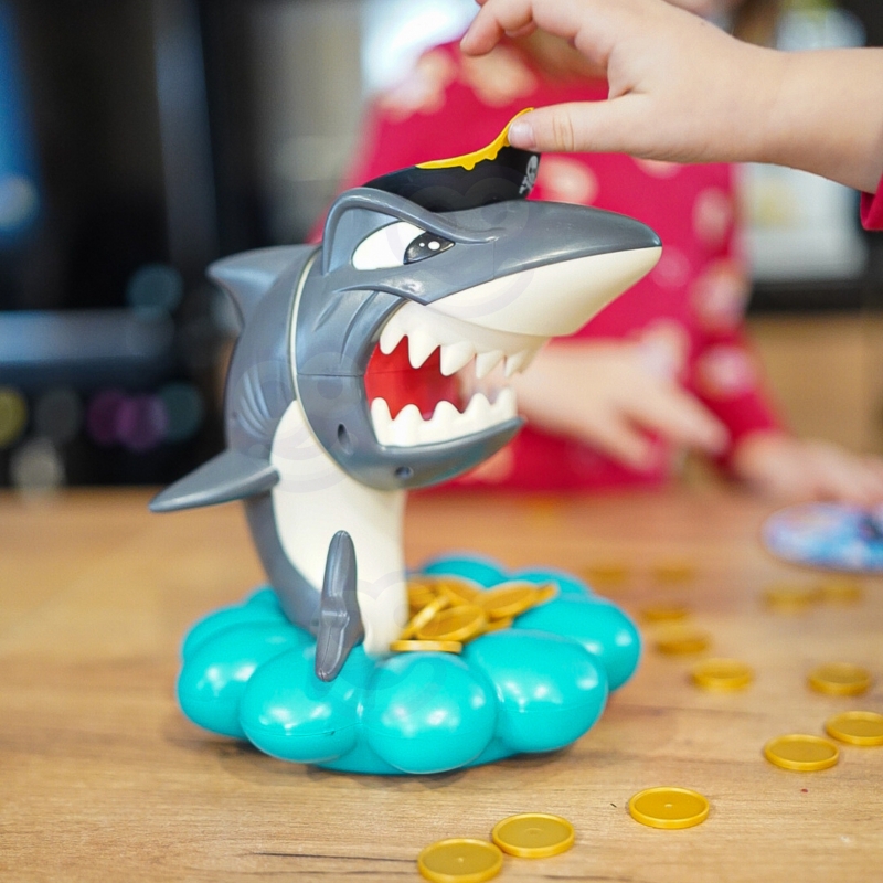 Na muszelkę rekina wsypujemy wszystkie złote monety. Na kole ze strzałką gracze kolejno losują ilość złotych monet do wyciągnięcia. Następnie zgodnie z wylosowaną opcją starają się je wciągnąć z muszelki rekina.Rekin jest bardzo czujny i w każdej chwili może po prostu wystrzelić, gdy to się stanie przegrywa osoba, w której turze był wystrzał.