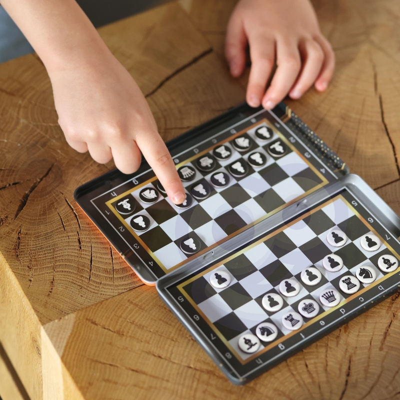 Chyba każdy słyszał o szachach. To jedna z najstarszych gier, która do dziś ma swoje szerokie grono fanów, a grać w nią mogą zarówno dzieci jak i dorośli. Szachy magnetyczne od Woopie to ciekawa propozycja dla osób, które dużo podróżują lub spędzają dużo czasu poza domem, a chcą zawsze mieć opcję sięgnięcia do swojej ulubionej gry. Kompaktowe, lekkie pudełko zmieści się do każdej torebki lub plecaka, a magnetyczne pionki sprawiają, że można zagrać partyjkę w dowolnym miejscu, nawet w trudnych warunkach nie bojąc się, że znaczniki się poprzesuwają i zgubimy przebieg partii. Metalowe pudełko służy nam zarówno za opakowanie jak i za planszę, dzięki czemu gabaryt gry jest ograniczony do minimum. Dodatkową opcją zestawu jest możliwość zagrania w warcaby, które w prostocie swoich zasad idealnie sprawdzą się jako wprowadzenie do świata bardziej skomplikowanych szachów.