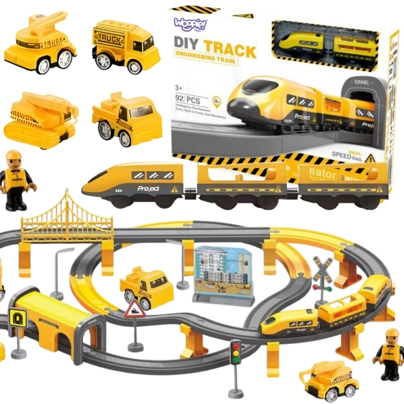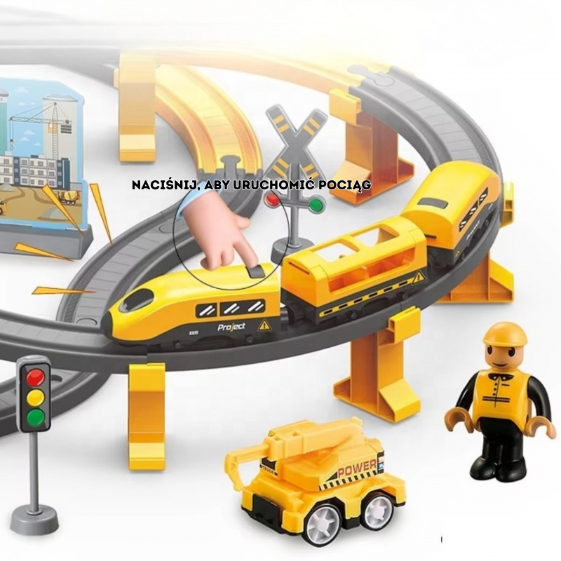 Fascynujący zestaw kolejki elektrycznej marki Woopie to prawdziwe centrum dowodzenia dla małych konstruktorów! Żółty pociąg ekspresowy z realistycznymi efektami dźwiękowymi wprowadzi dziecko w świat budowy, planowania tras i tworzenia własnych scenariuszy zabawowych. Dzięki bogatemu wyposażeniu w mosty, tunele, sygnalizację świetlną i pojazdy budowlane, maluch może komponować nieograniczoną liczbę układów torowych, a następnie obserwować, jak pociąg mknie przez ich autorskie miasto. To zabawka, która łączy ekscytację prawdziwej kolei z kreatywnością dziecięcego świata