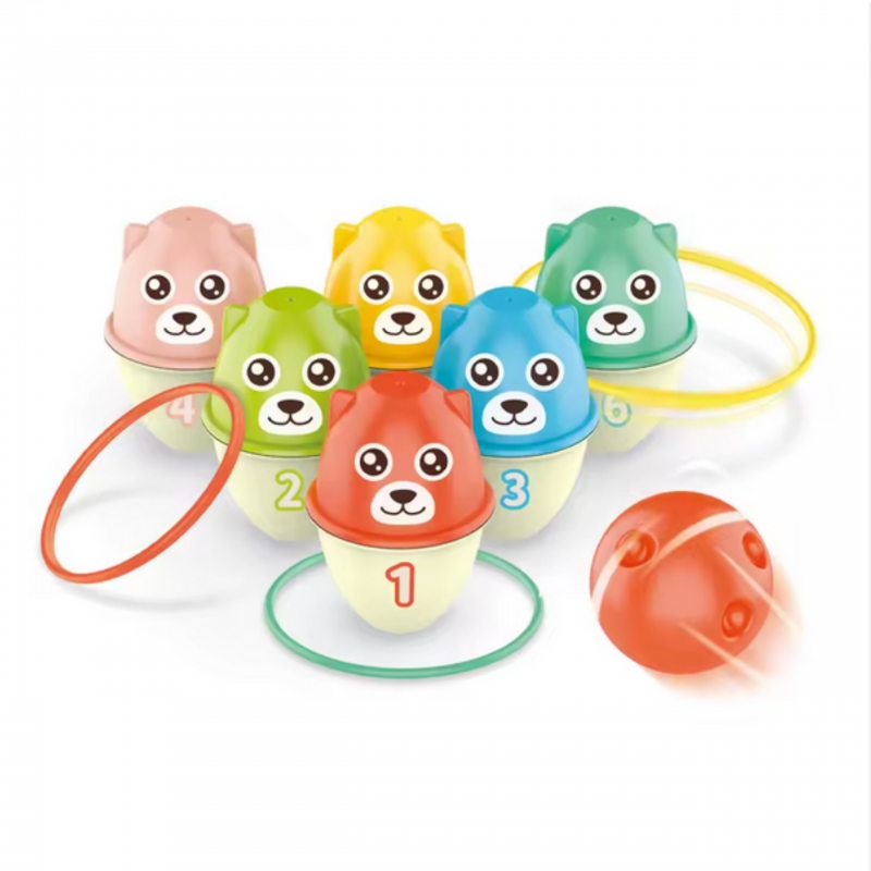 Kręgle dla dzieci Kolorowe Misie od Woopie to innowacyjna, edukacyjna zabawka, która łączy radość z zabawy w kręgle z nauką przez działanie. Zestaw składa się z kolorowych misiów z numerkami, które pełnią rolę kręgli, a także z piłeczek do zbijania i obręczy do rzucania, co daje wiele różnych możliwości zabawy. Każdy miś ma inny kolor i numer, co pozwala dziecku na naukę rozpoznawania barw oraz cyferek. Rzucając piłką lub obręczami na misie, dziecko ćwiczy koordynację ręka–oko, precyzję ruchów oraz planowanie swoich działań. Dzięki atrakcyjnej formie i różnorodnym funkcjom, zestaw doskonale nadaje się zarówno do samodzielnej zabawy, jak i do wspólnego spędzania czasu z rodzicami czy rówieśnikami. Zabawka została wykonana z trwałych, bezpiecznych dla dzieci materiałów, które są przyjemne w dotyku i odporne na uszkodzenia. Miśki można również układać w wieżę, wkładając je jeden w drugi niczym kubeczki. Różne tryby gry – rzucanie obręczami, zbijanie kręgli, liczenie cyferek – sprawiają, że maluch nie tylko świetnie się bawi, ale i intensywnie się uczy. To doskonały prezent dla każdego dziecka, który gwarantuje nie tylko uśmiech, ale także aktywny rozwój zdolności poznawczych, manualnych i społecznych. Idealny do domu, żłobka, przedszkola czy na rodzinne wyjazdy.